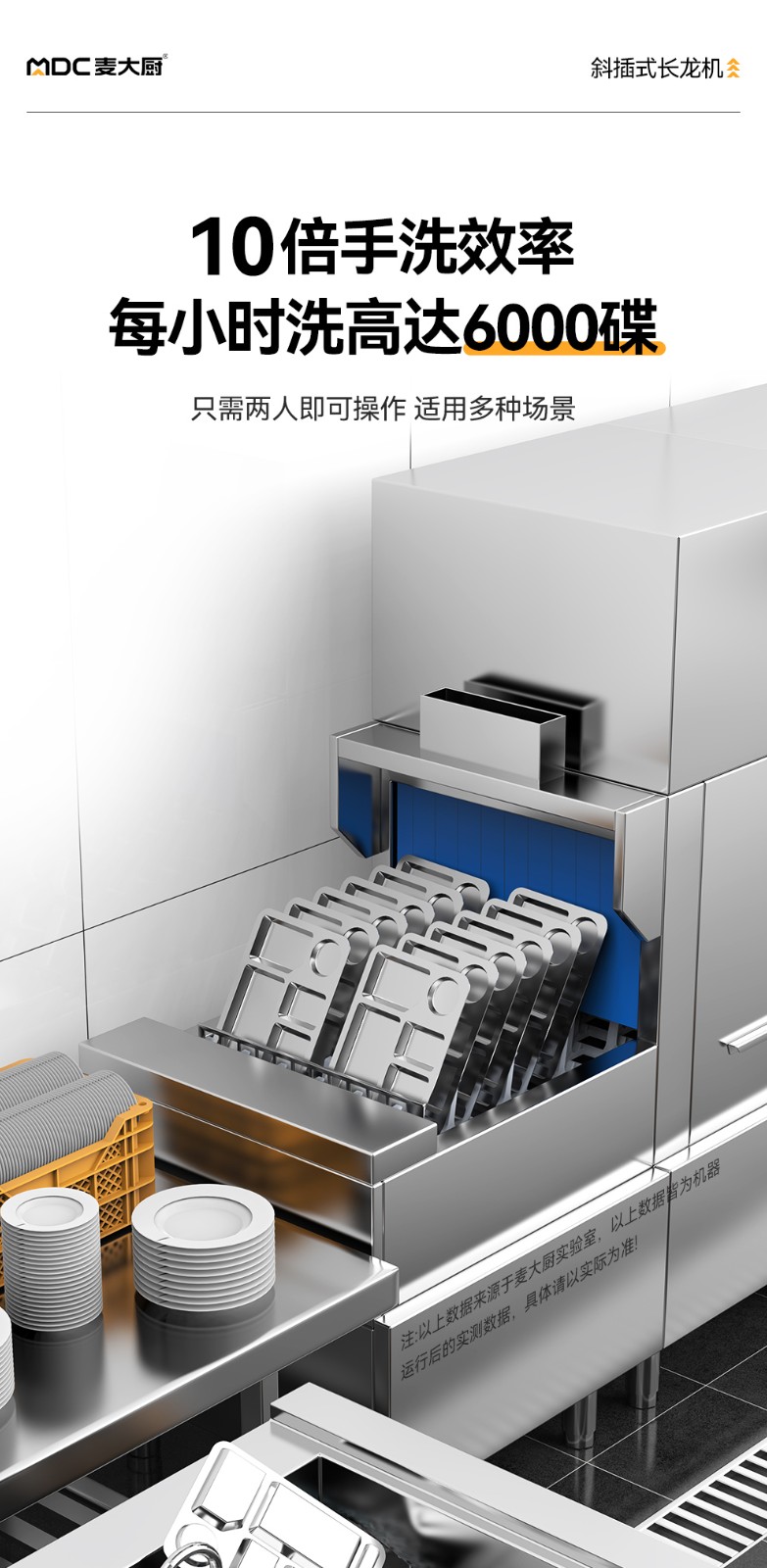 麦大厨豪华款3.8m斜插式单缸双喷淋单烘洗碗机商用