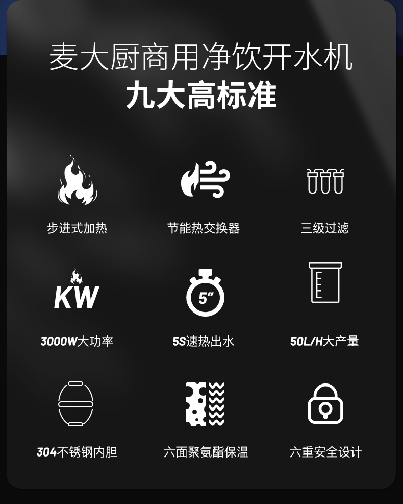 麦大厨背靠款三级过滤六开230L步进式商用开水机