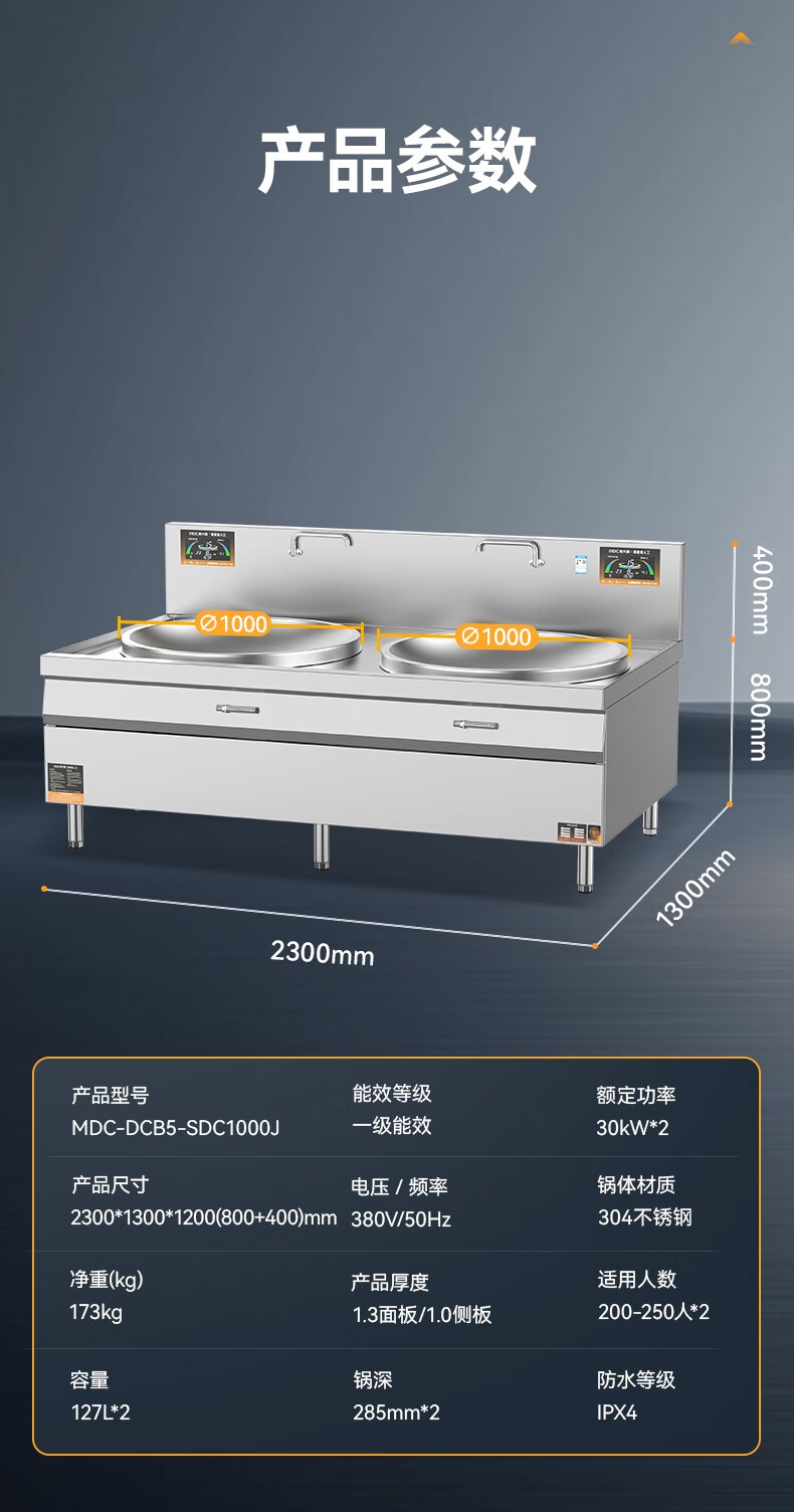 麦大厨金麦款201材质电磁大炒炉双头大锅灶1000