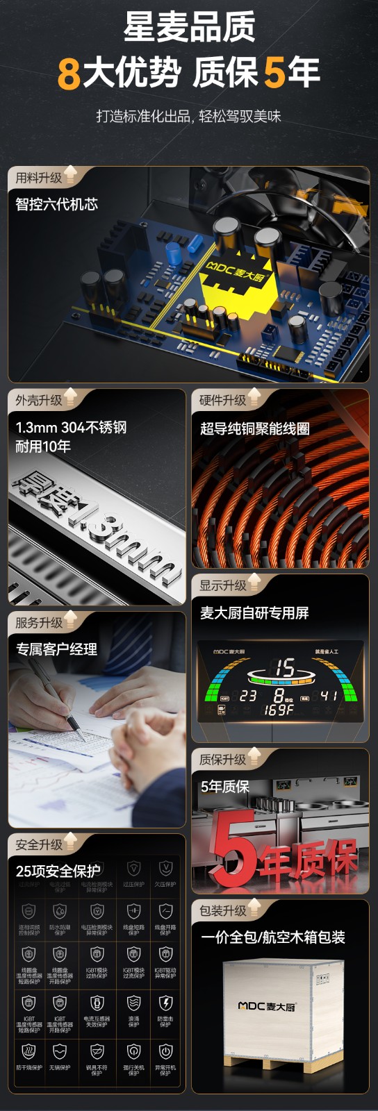 麦大厨星麦款304材质电磁双头单尾小炒炉20kw