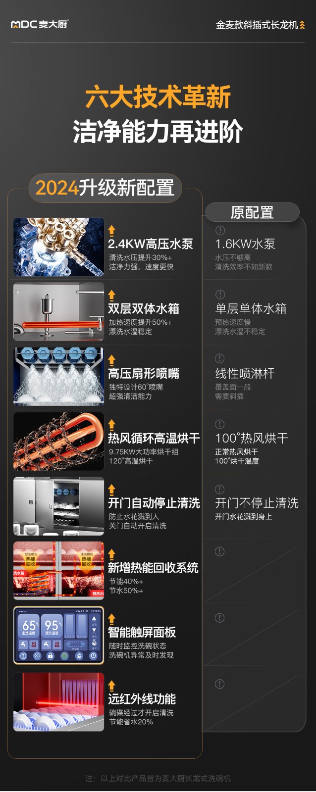麦大厨金麦款斜插式触屏热回收2.95m双缸双喷洗碗机