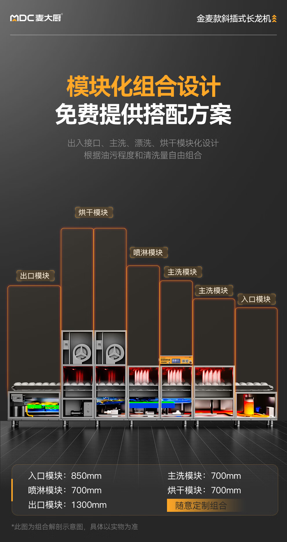 麦大厨金麦款斜插式触屏热回收4.45m双缸双喷单烘洗碗机
