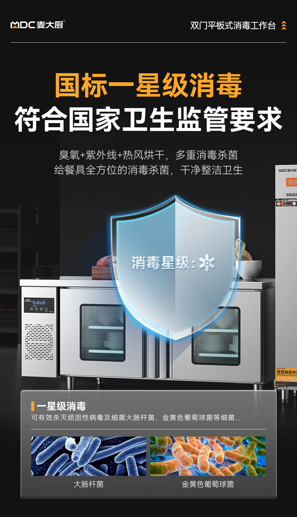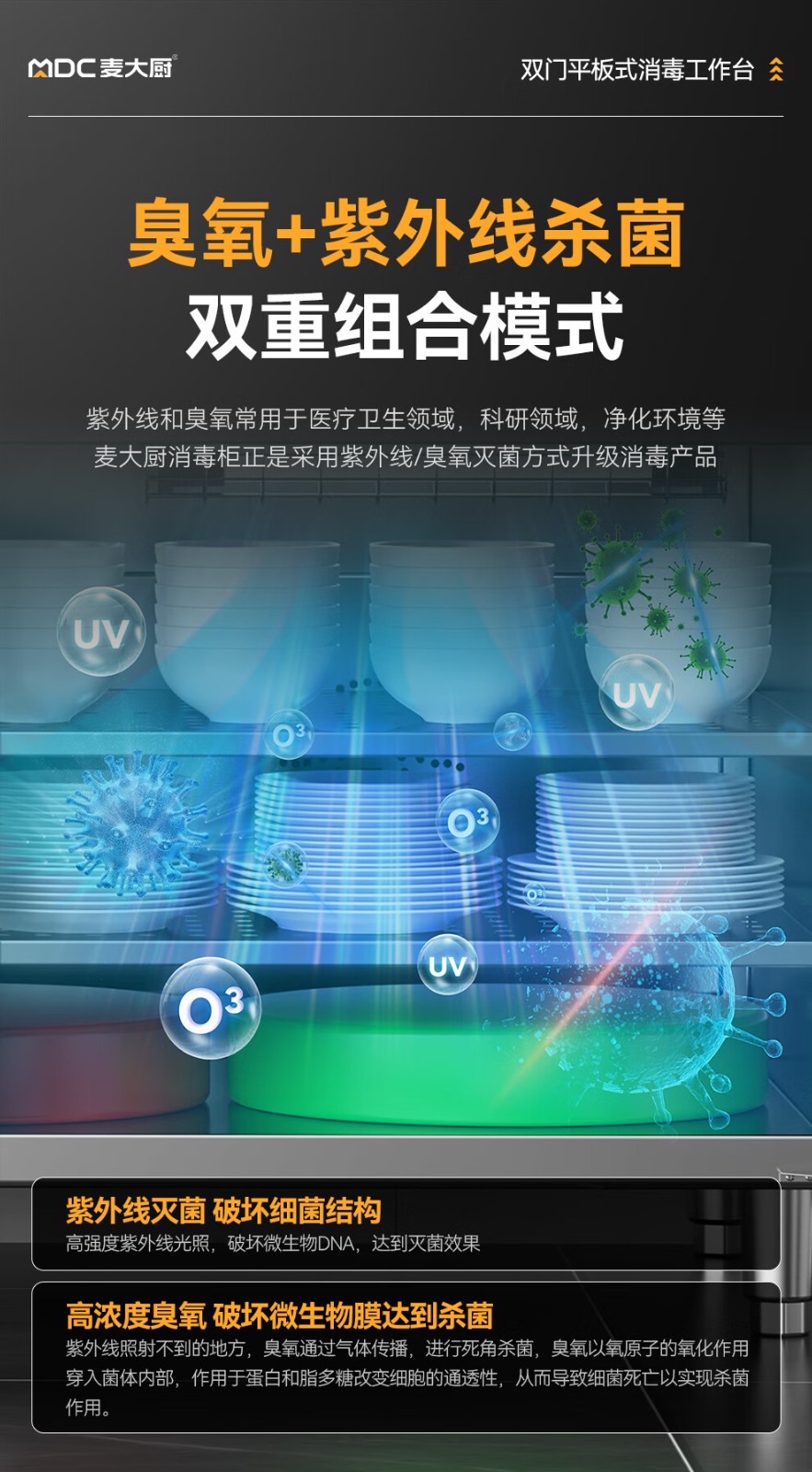 麦大厨1.8m双门平板式臭氧紫外线热风循环消毒工作台