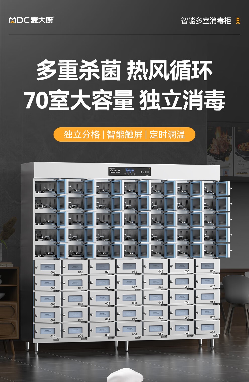 麦大厨70室智能触屏型热风循环中温消毒柜6.6KW
