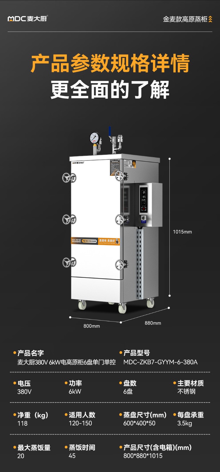 - 更多MDC商用高原蒸柜规格咨询在线客服