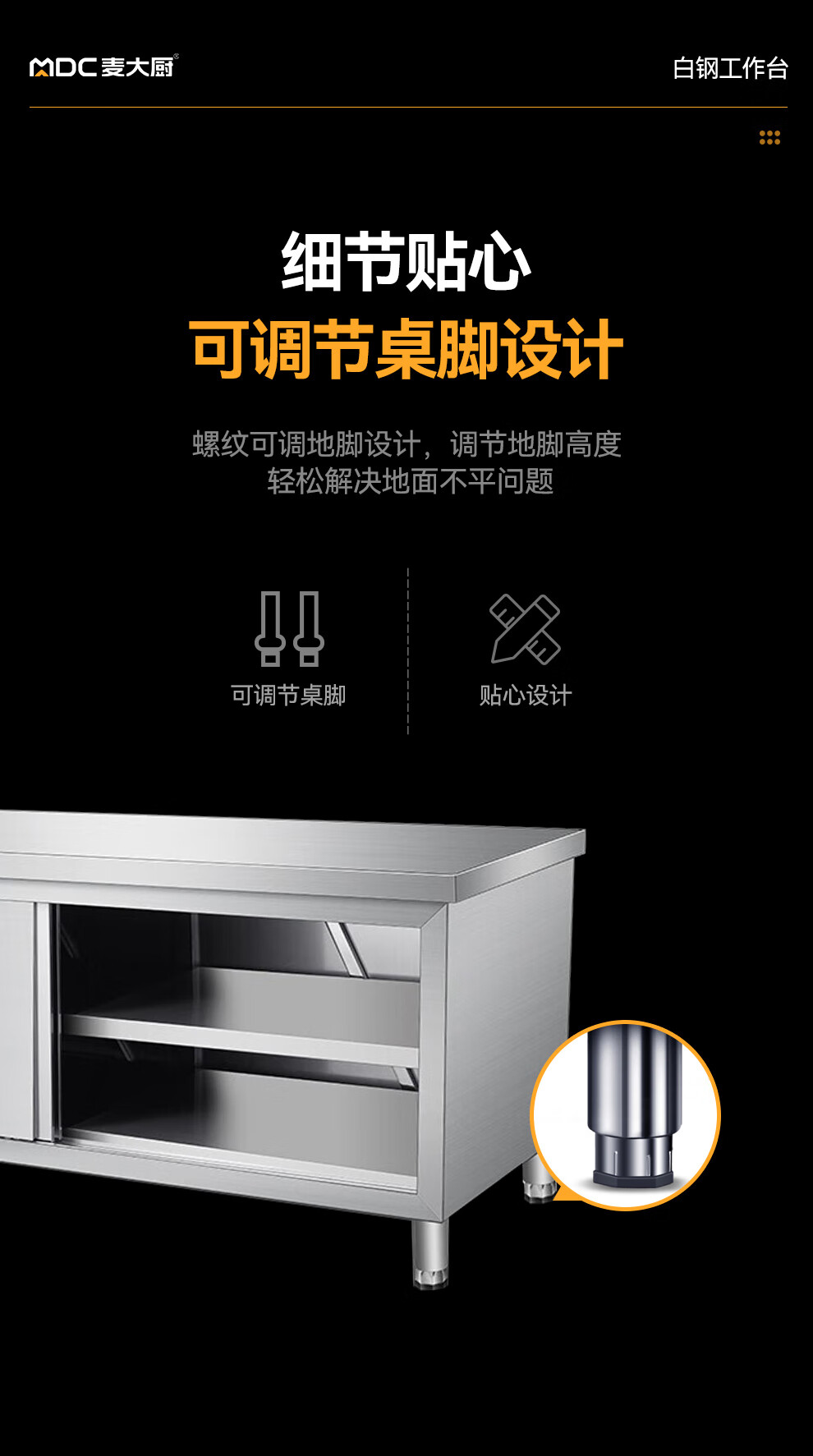 麦大厨1.8m升级款不锈钢工作台单通工作台带靠背