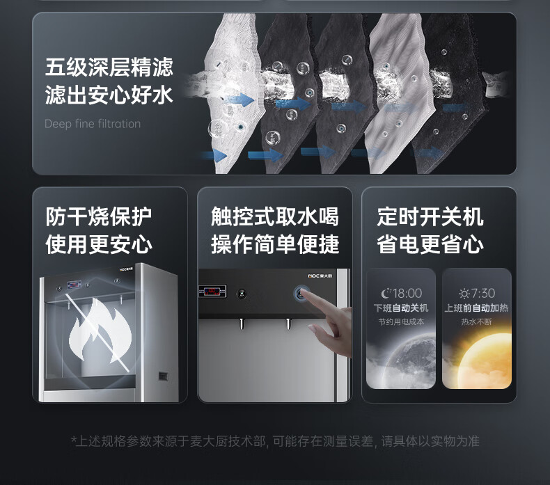 麦大厨3KW柜式触控饮水机一开二温快接五级超滤直饮机