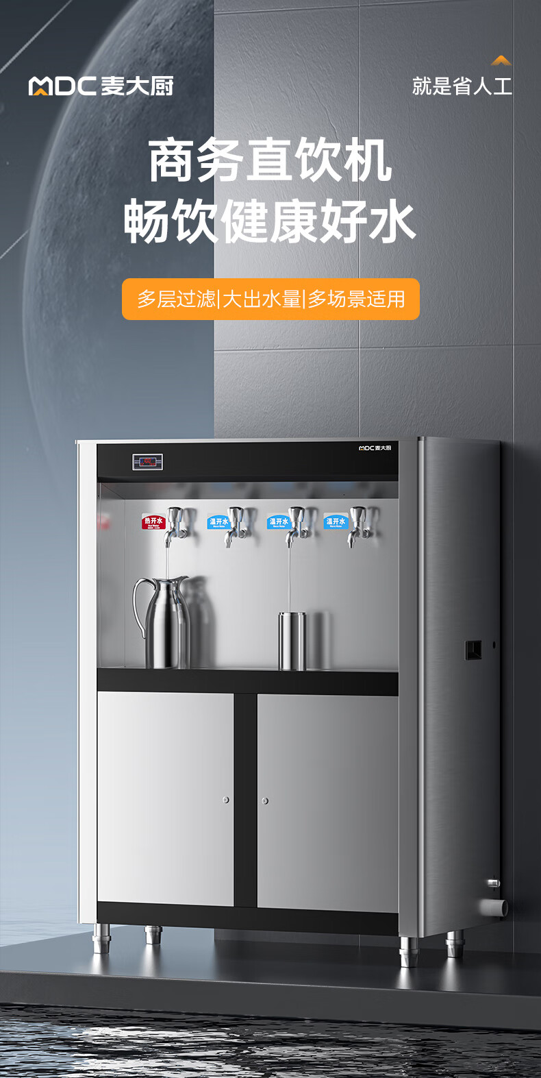 麦大厨4.5KW柜式龙头饮水机一开三温快接五级超滤直饮机