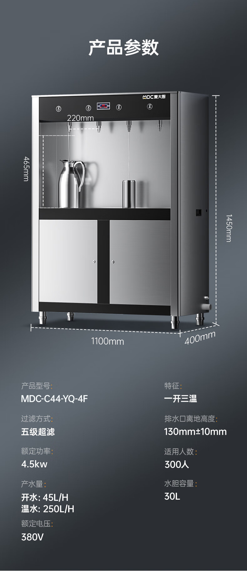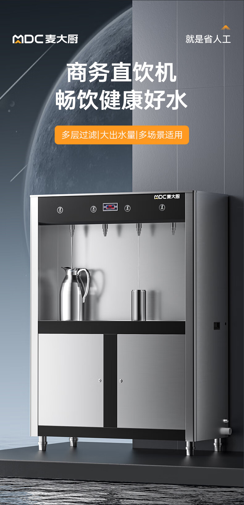麦大厨4.5KW柜式触控饮水机一开三温快接五级超滤直饮机