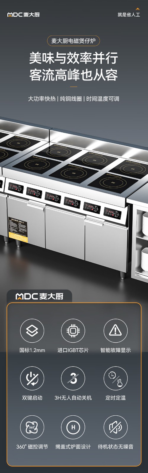 麦大厨商用多头电磁炉旗舰款六头柜式煲仔炉5KW