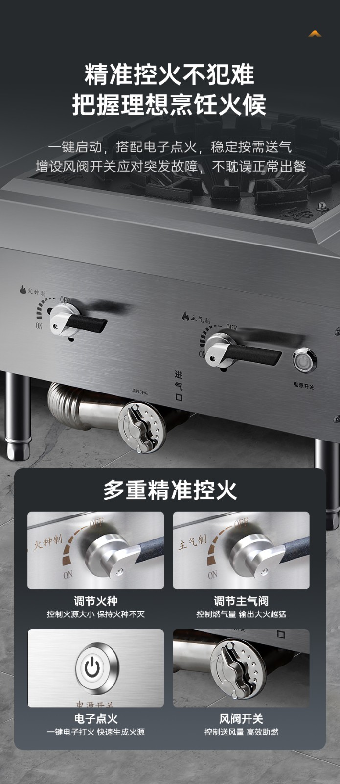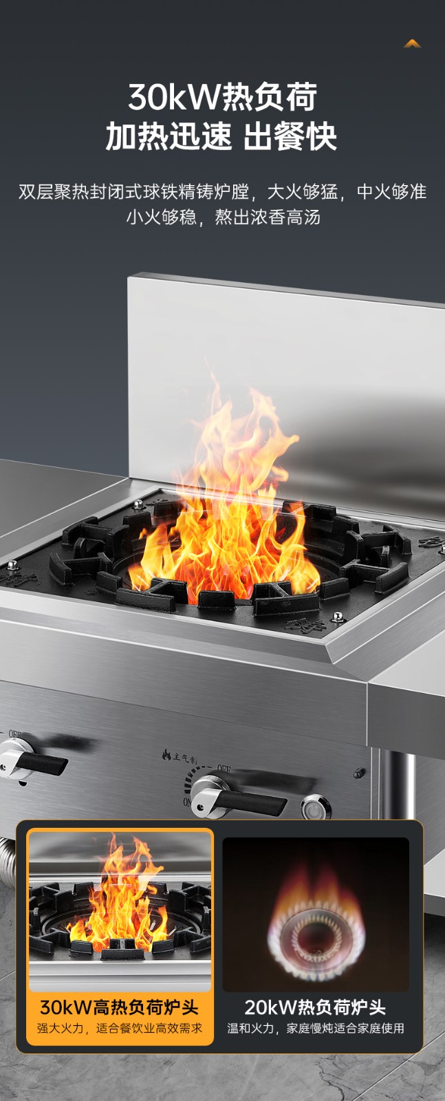 麦大厨金麦款食堂饭店燃气灶商用燃气双头低汤炉60kw