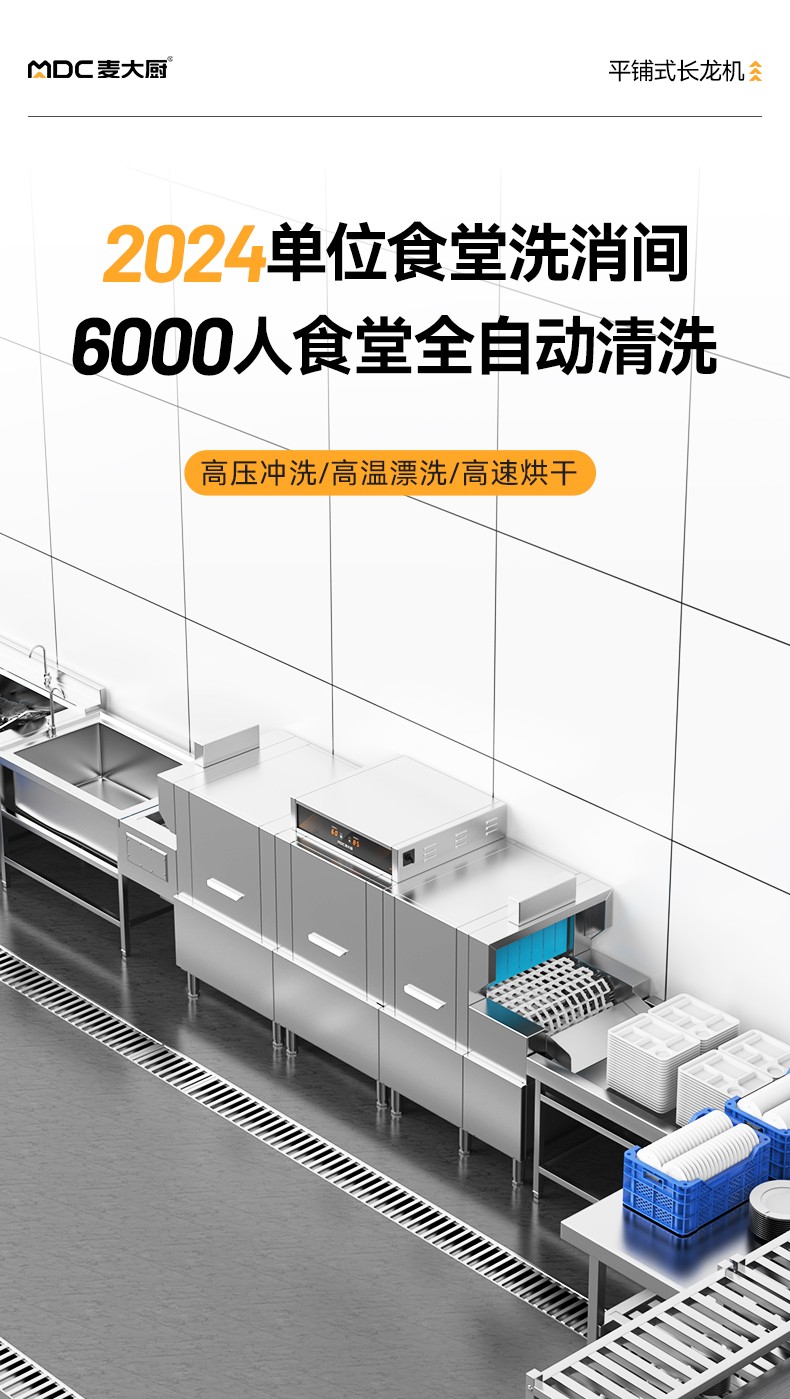麦大厨3.1m豪华款平放式双缸双喷淋学校食堂洗碗机