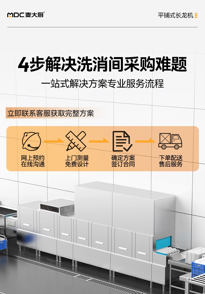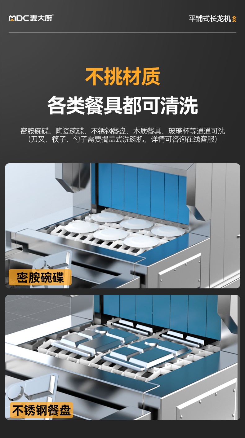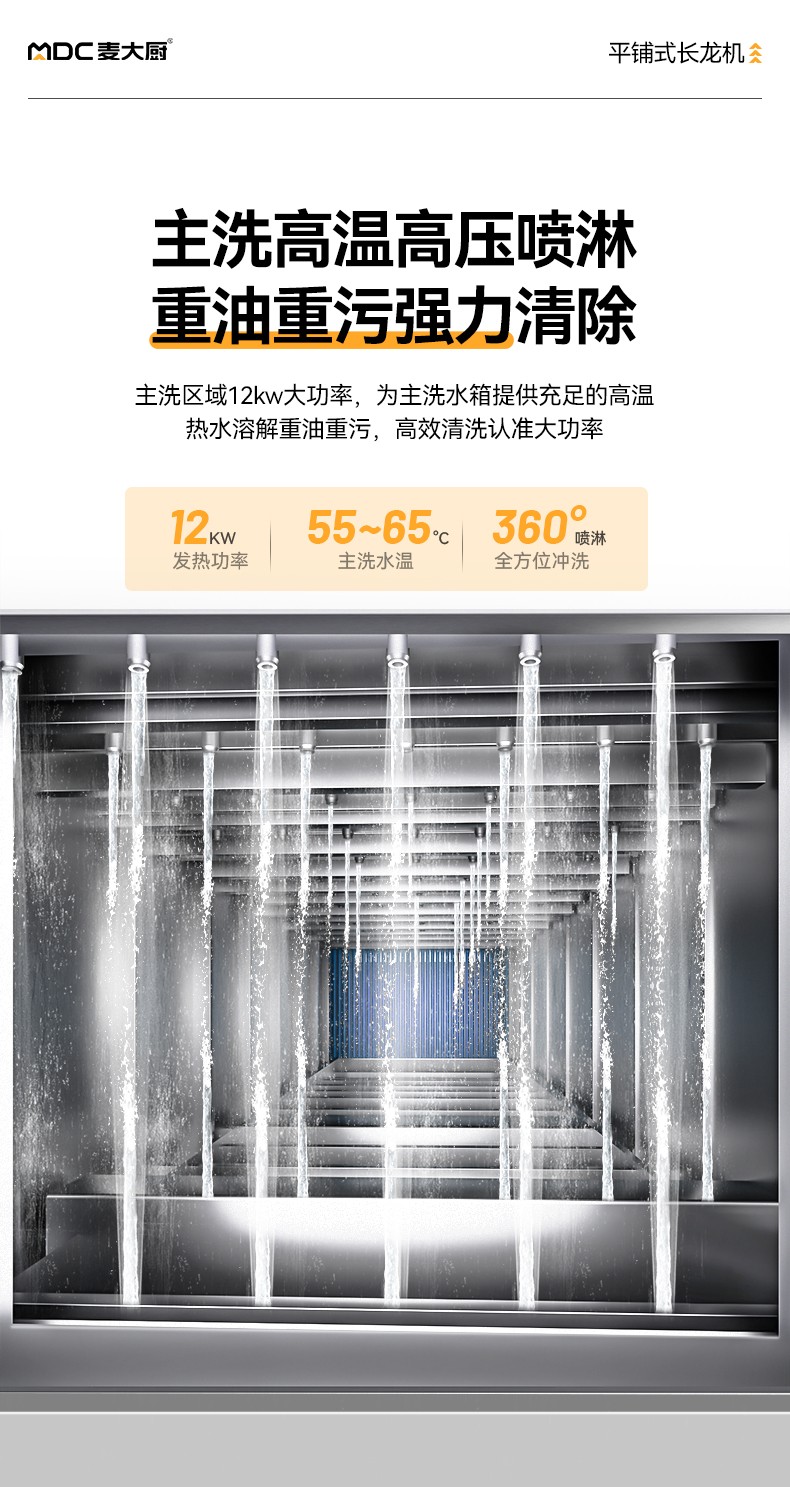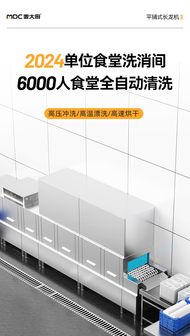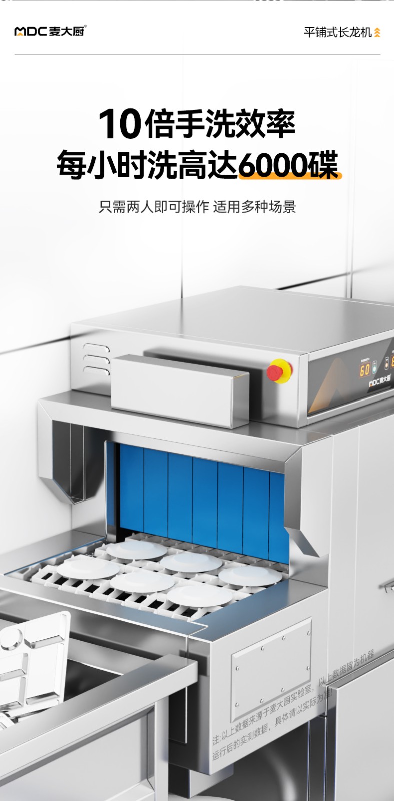 麦大厨5.7m豪华款平放式双缸双喷淋双烘干商用企业洗碗机
