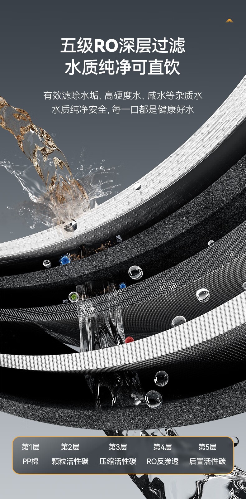 过滤方式:五级RO反渗透400G+6G