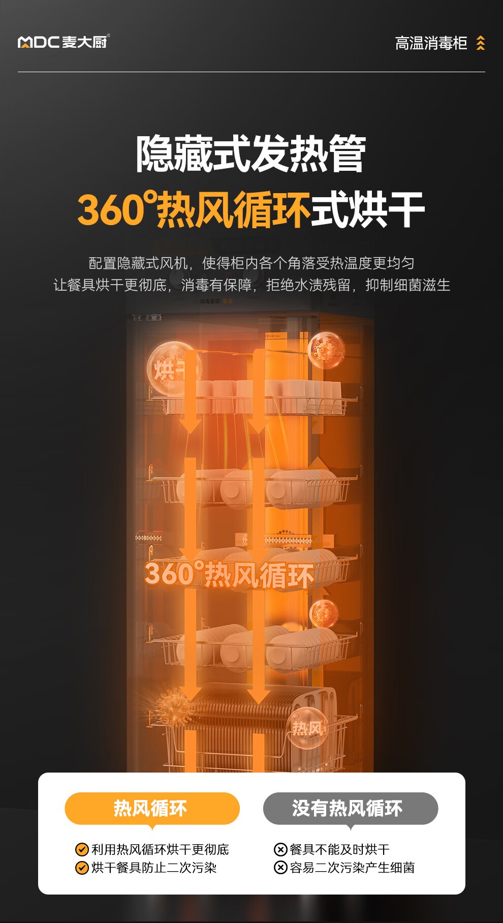 麦大厨经典旋钮款5层单门单控热风循环高温消毒柜920W