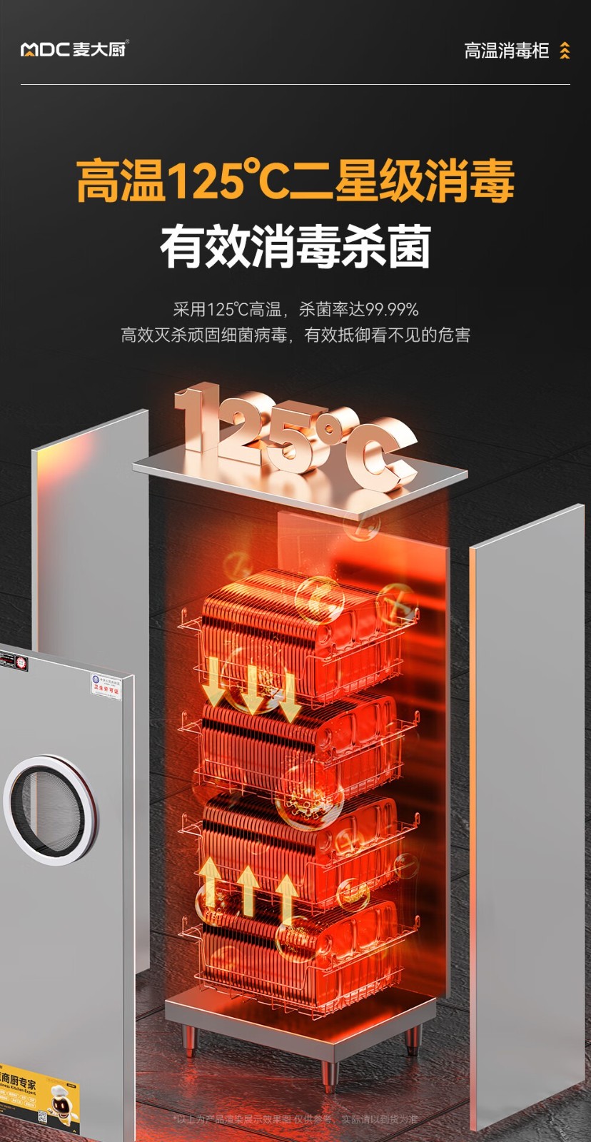麦大厨智能电脑型单门单控4层热风循环高温消毒柜1850W