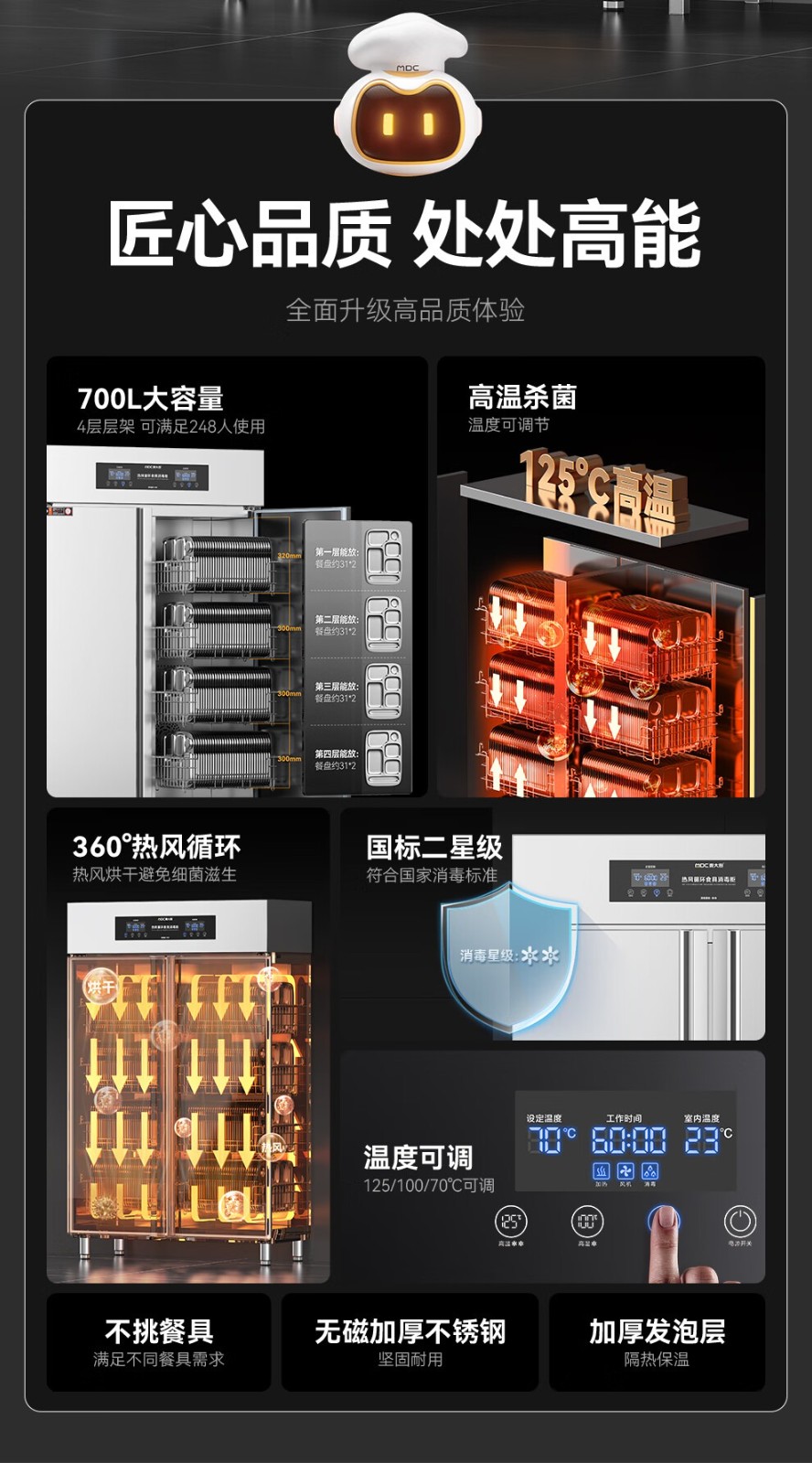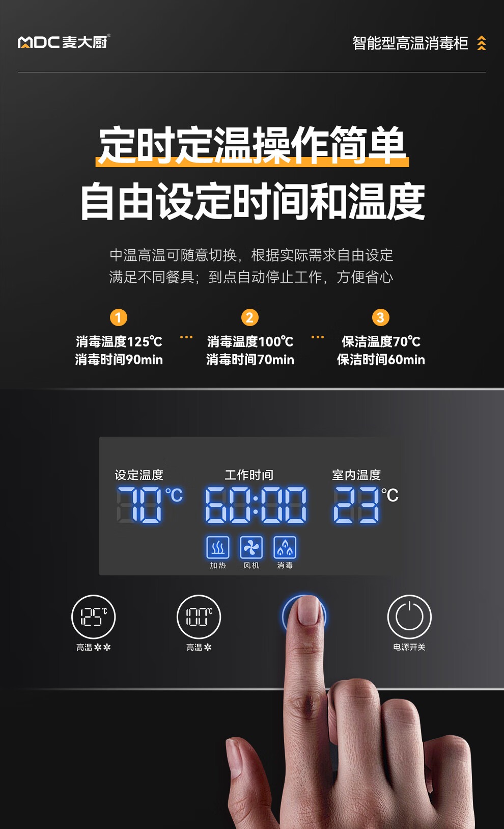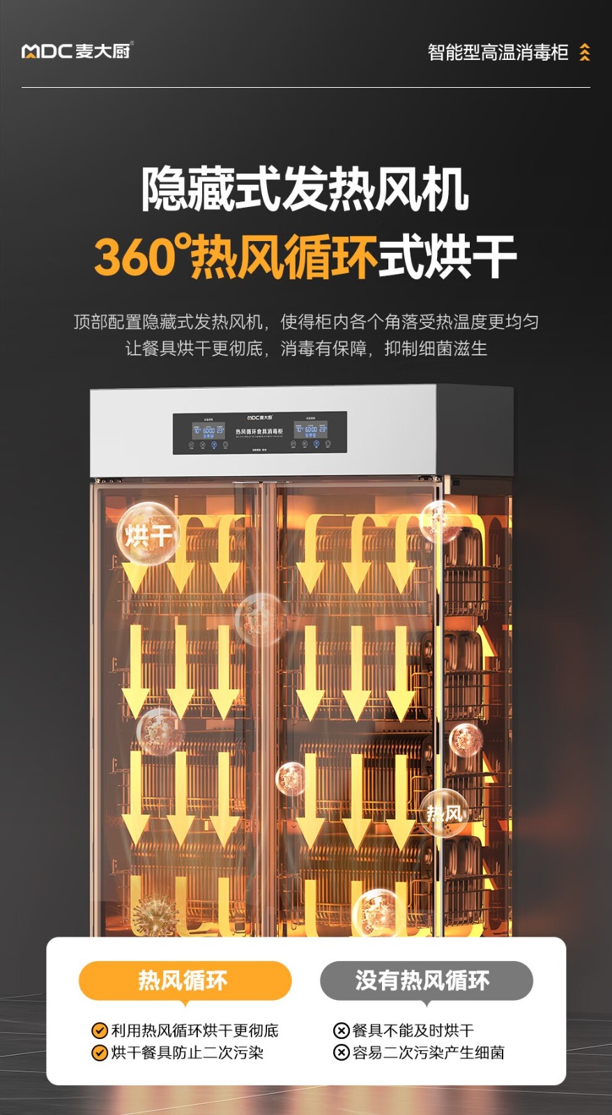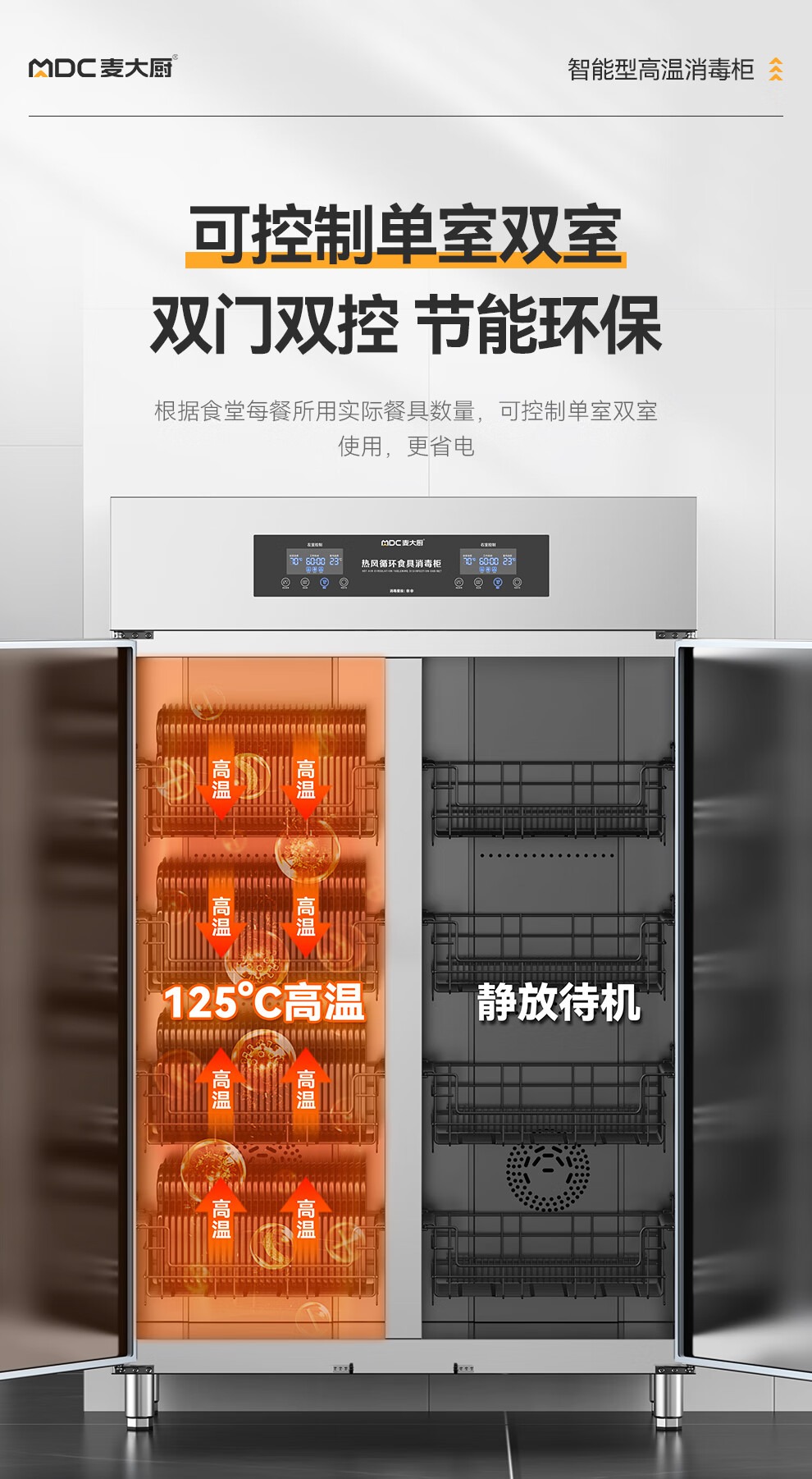 麦大厨智能电脑型双门双控4层热风循环高温消毒柜1870W