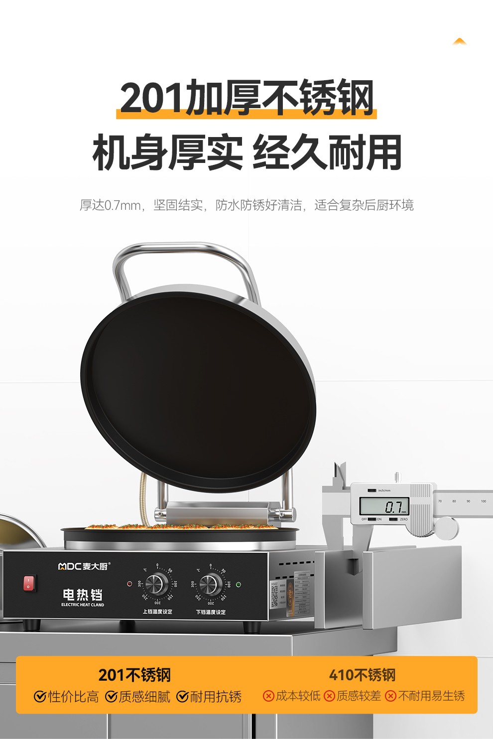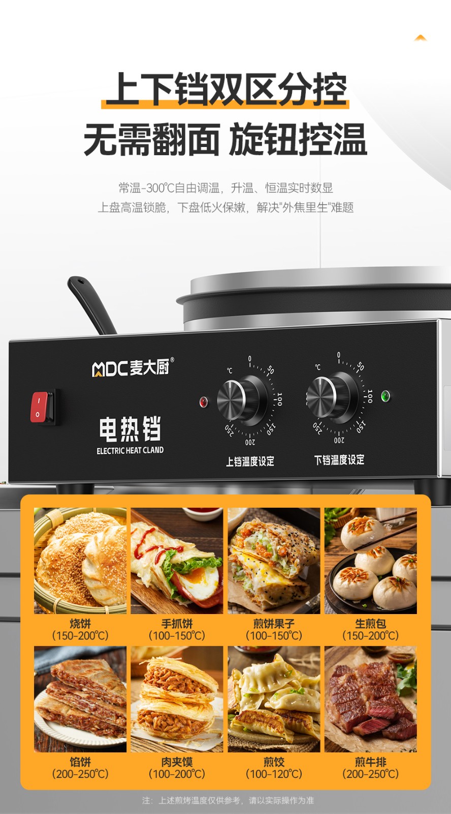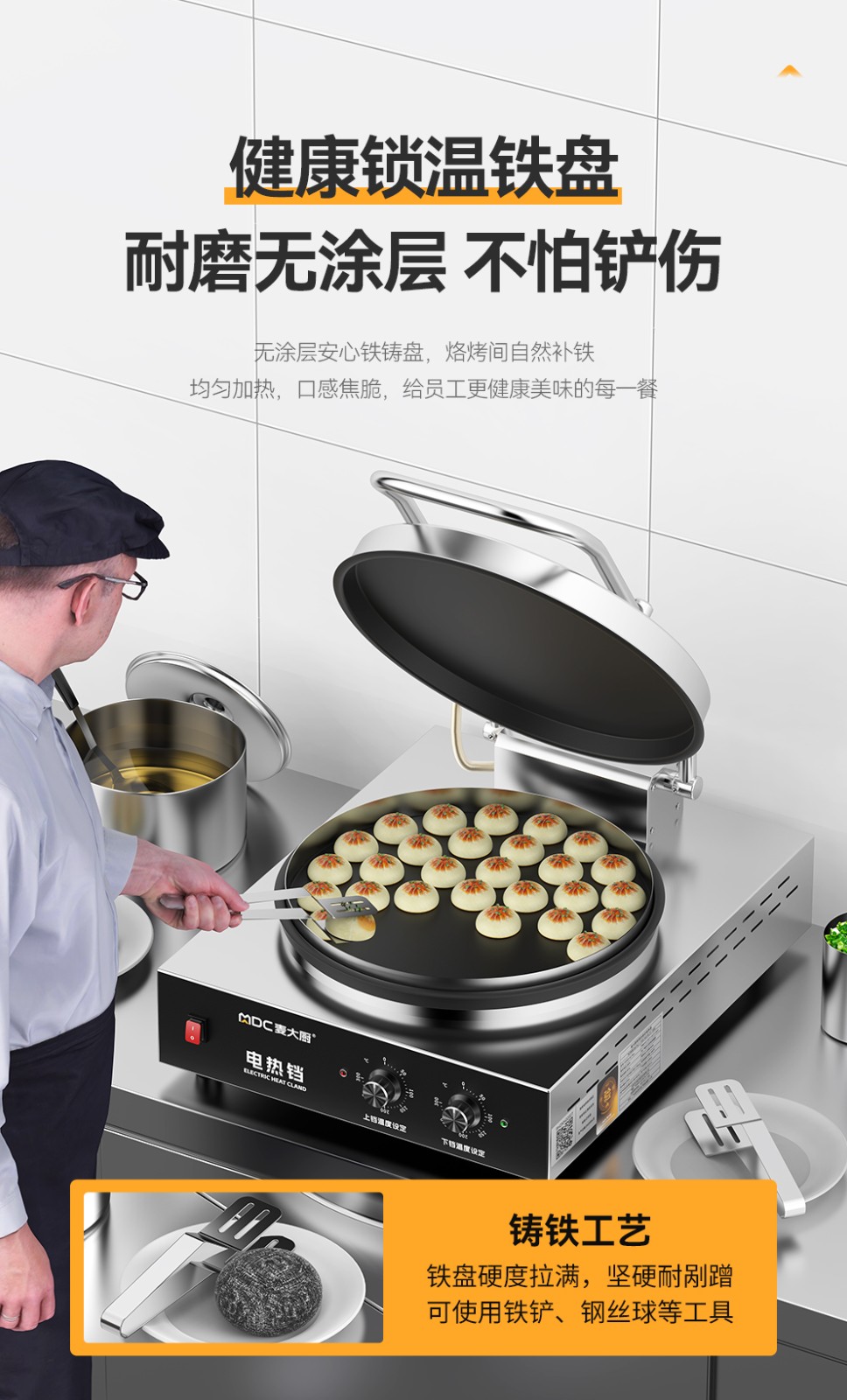 麦大厨台式旋钮款铁锅商用电饼铛大型双面加热