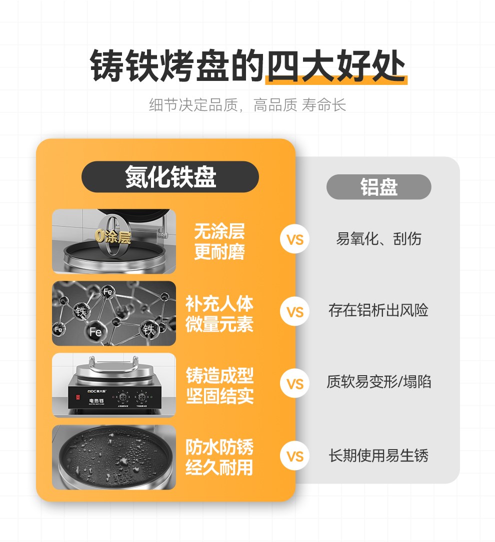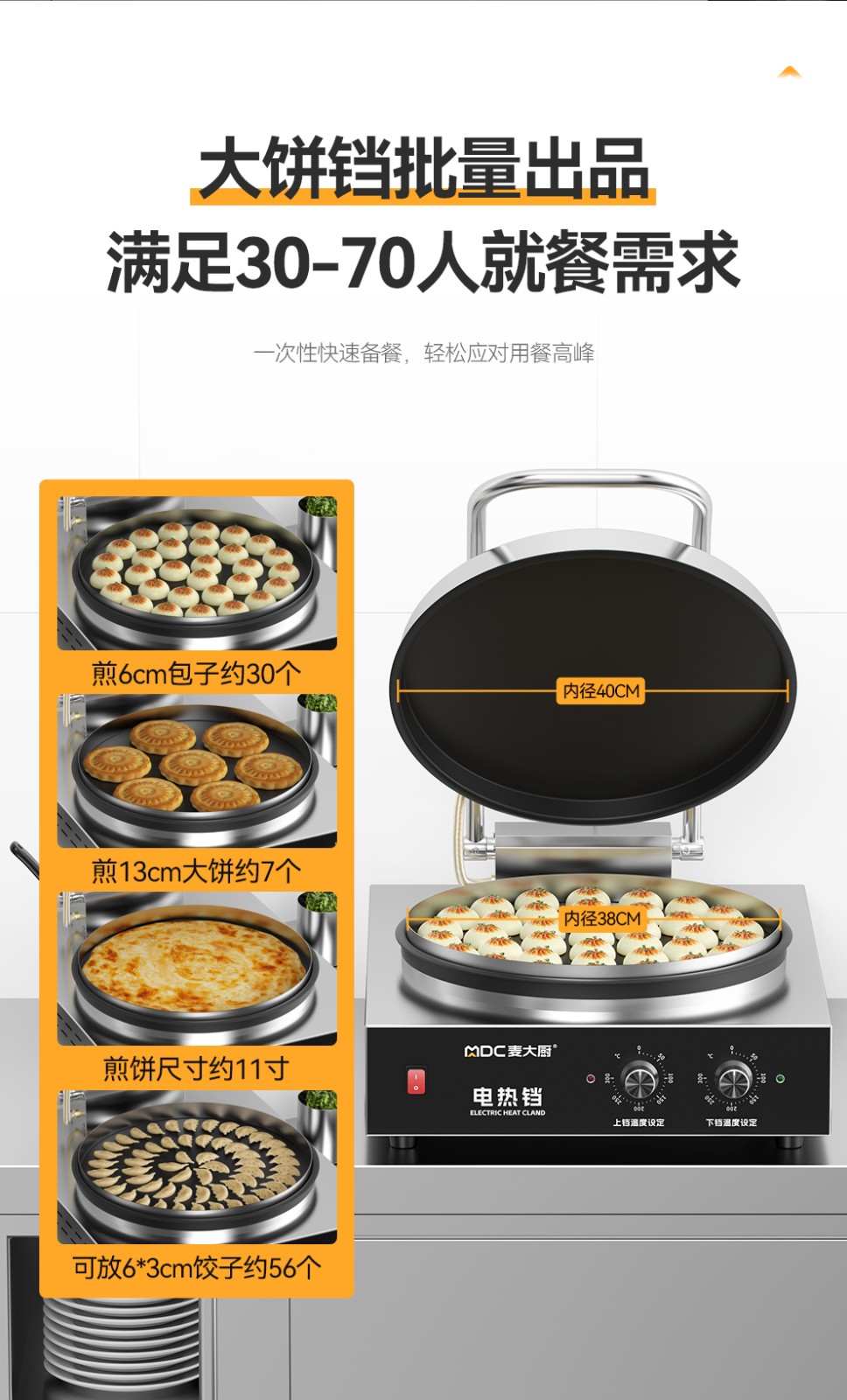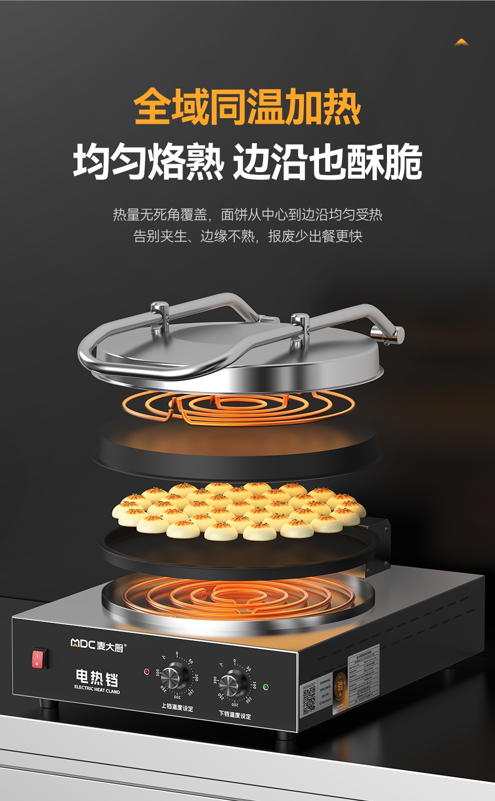 麦大厨台式旋钮款铁锅商用电饼铛大型双面加热