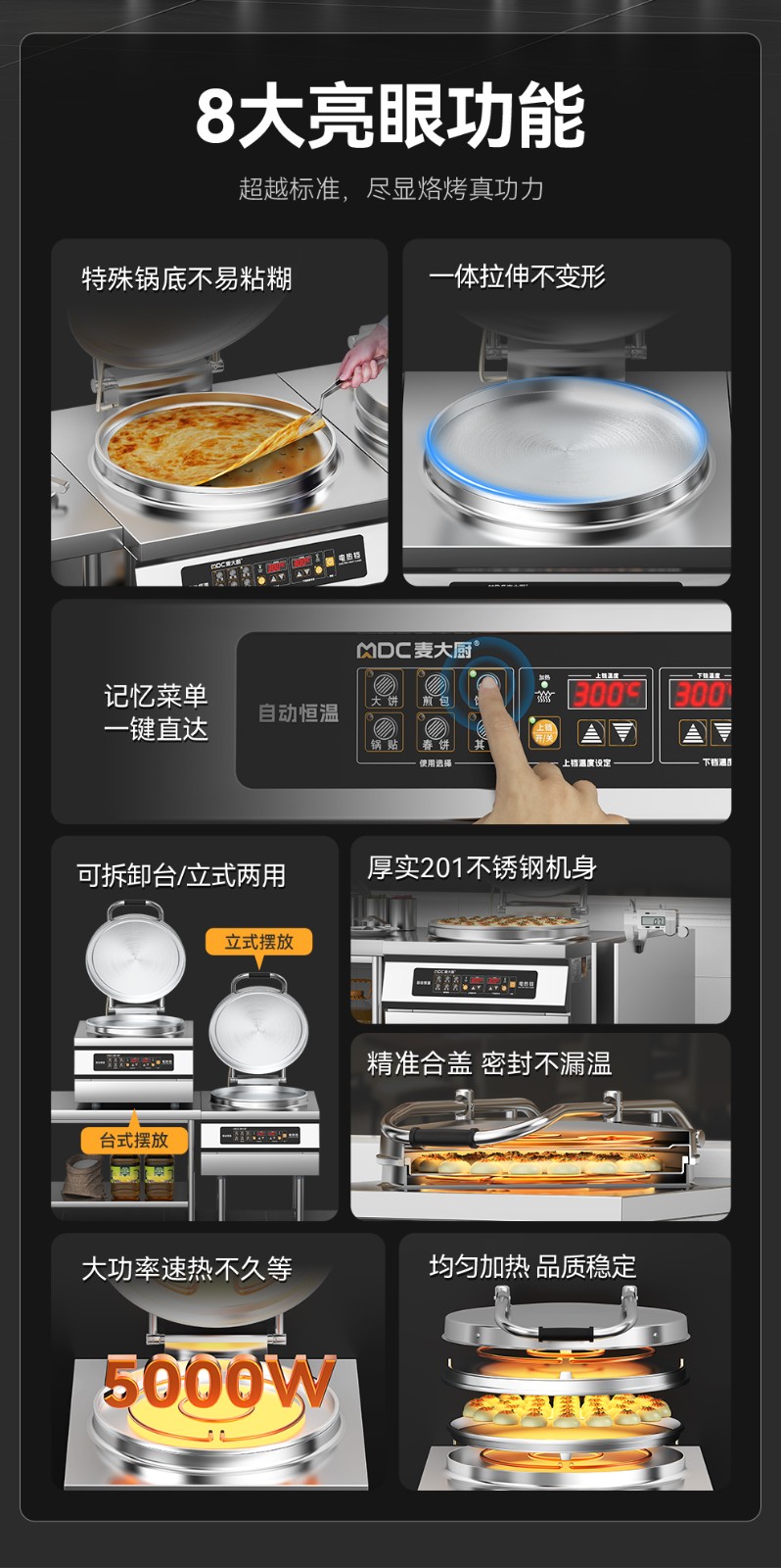麦大厨商用电饼铛大型双面加热立式电脑款铁/铝锅