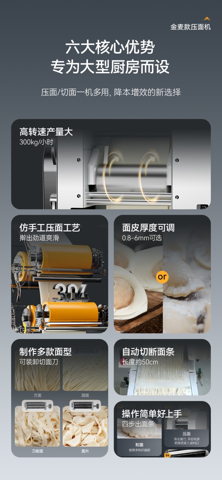 麦大厨金麦款3kW双滚轴压面条机配两把刀商用