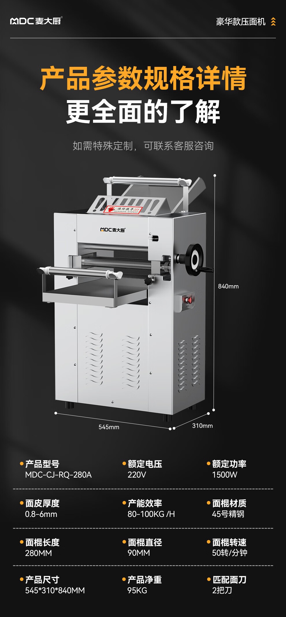 - 更多MDC商用压面机规格咨询在线客服