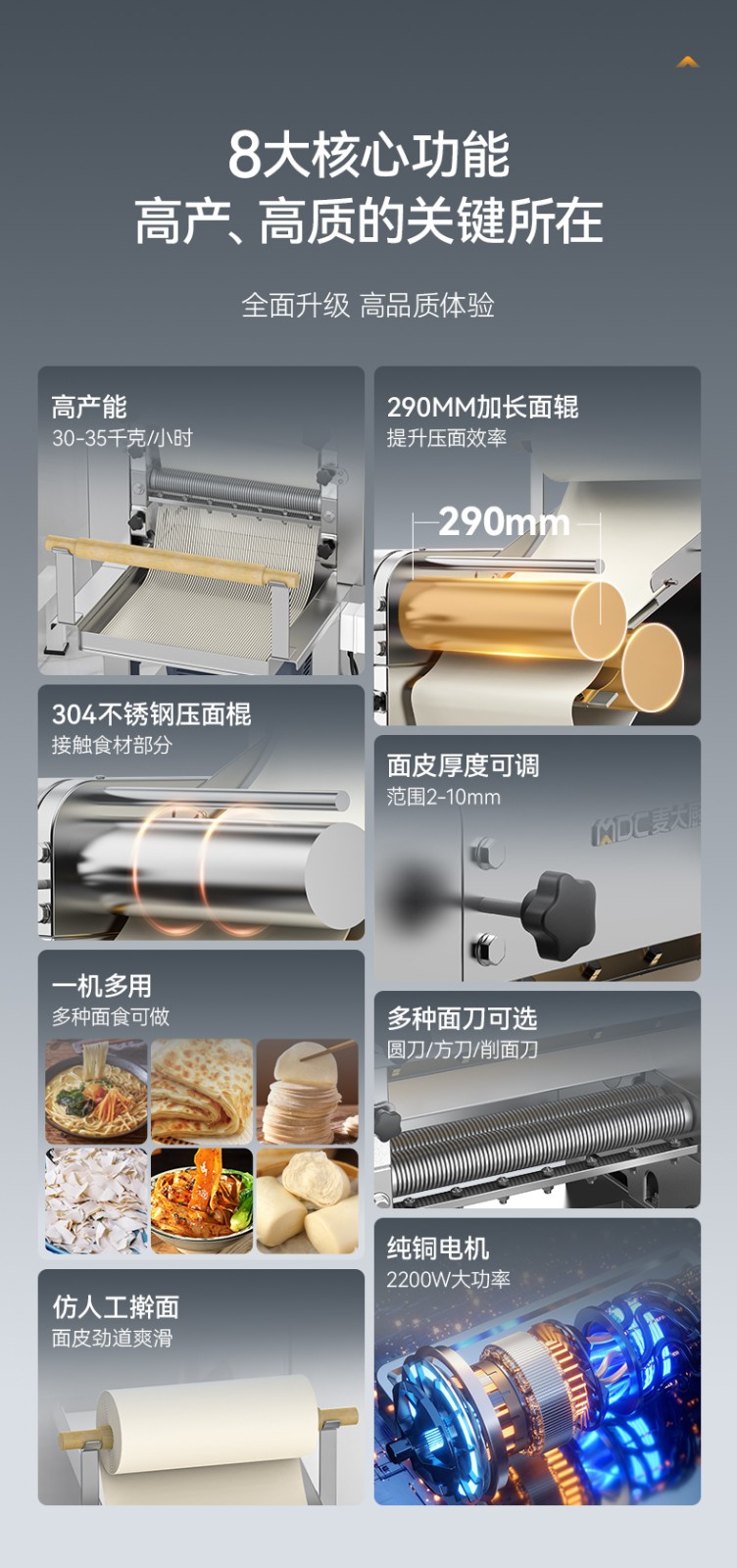 麦大厨连锁款2.2kw商用压面条机全自动轧面条机