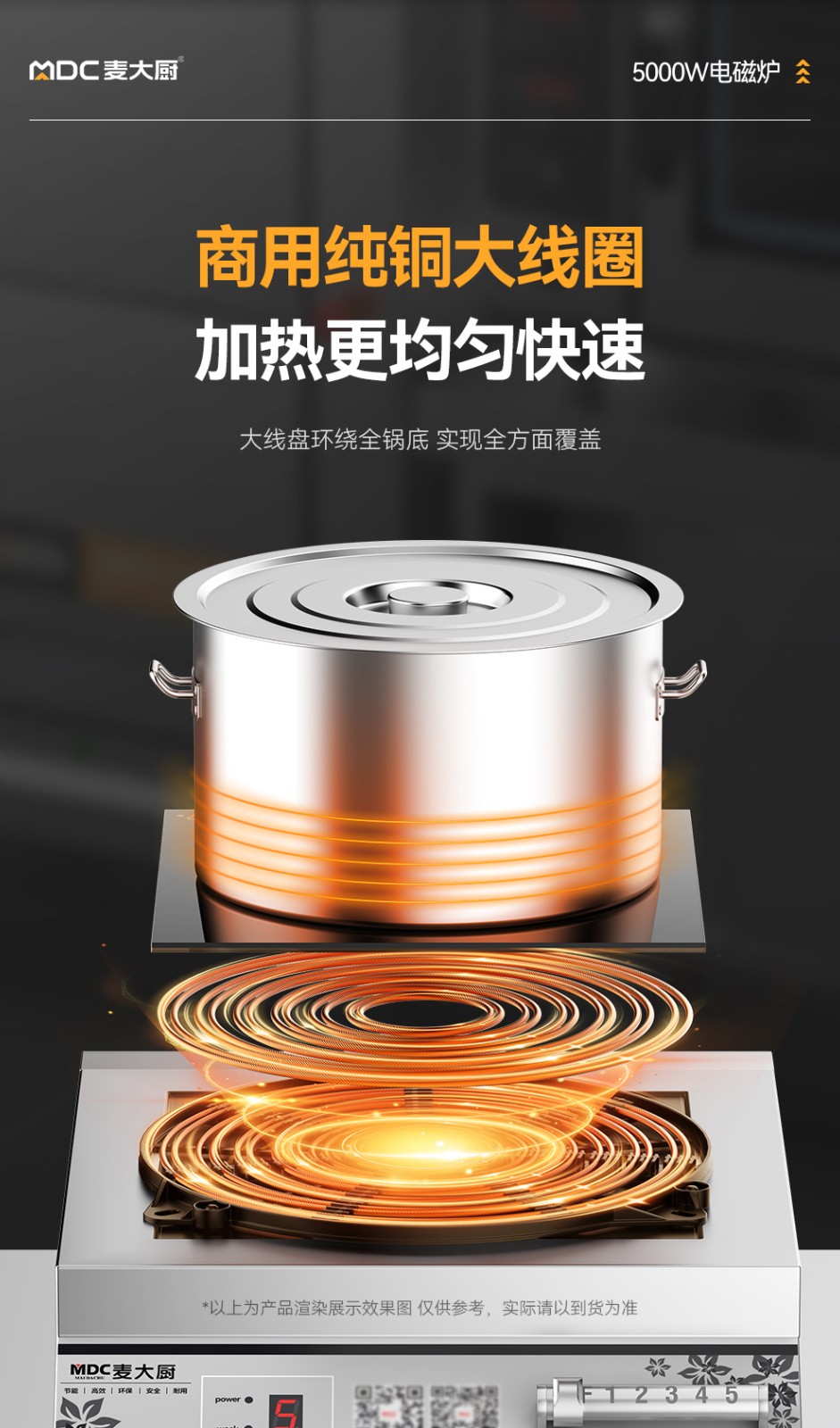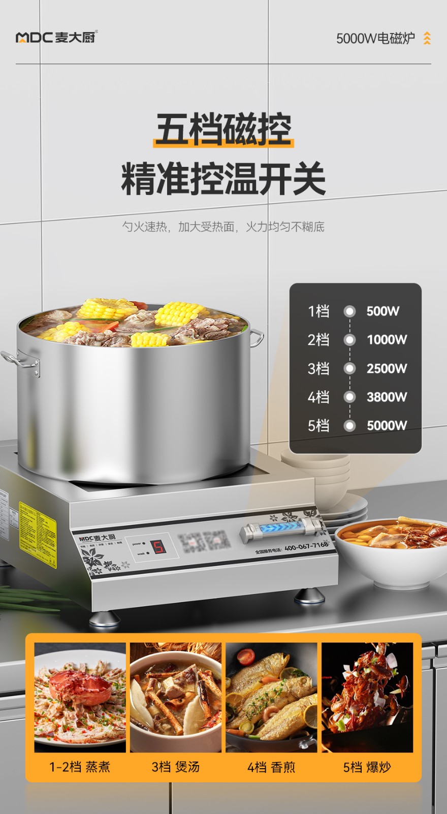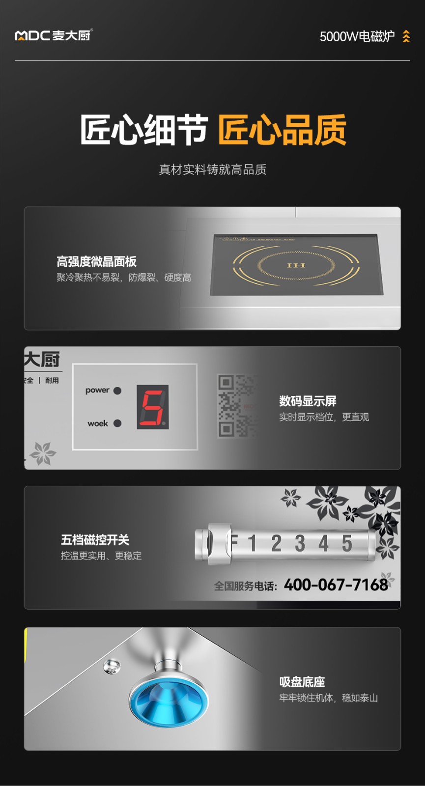 麦大厨磁控款220V台式平面商用电磁炉5kW