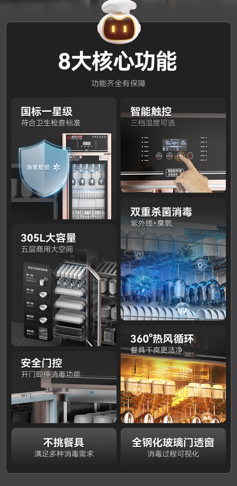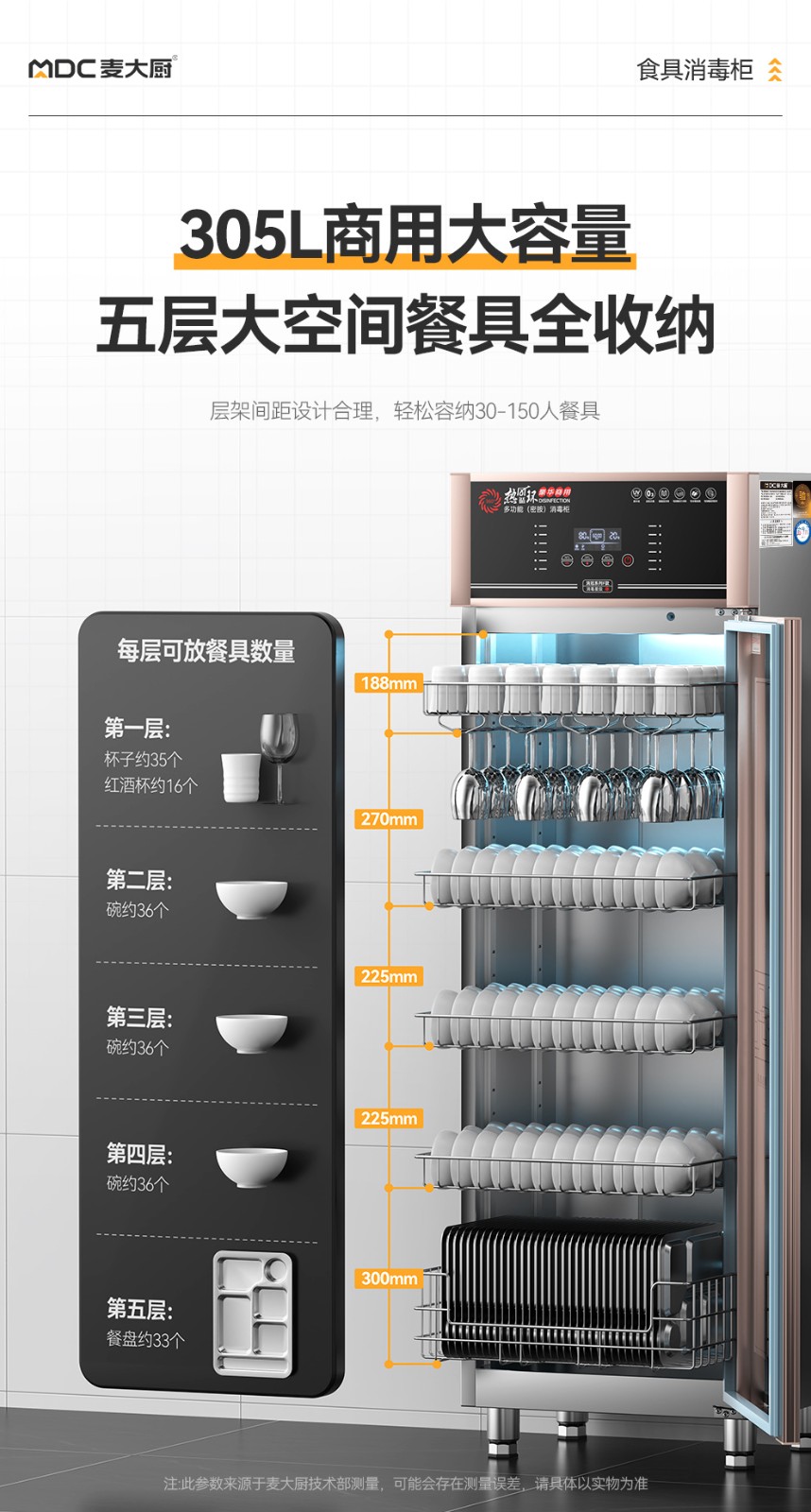 麦大厨豪华触屏款5层双门中温食具消毒柜(紫外线+臭氧+热风循环)950W