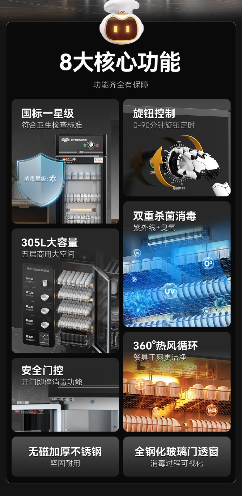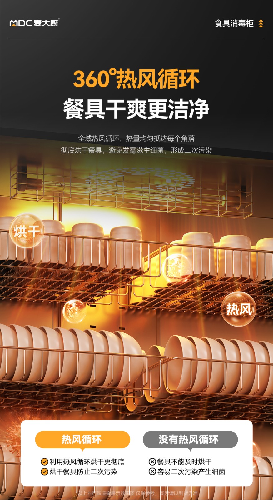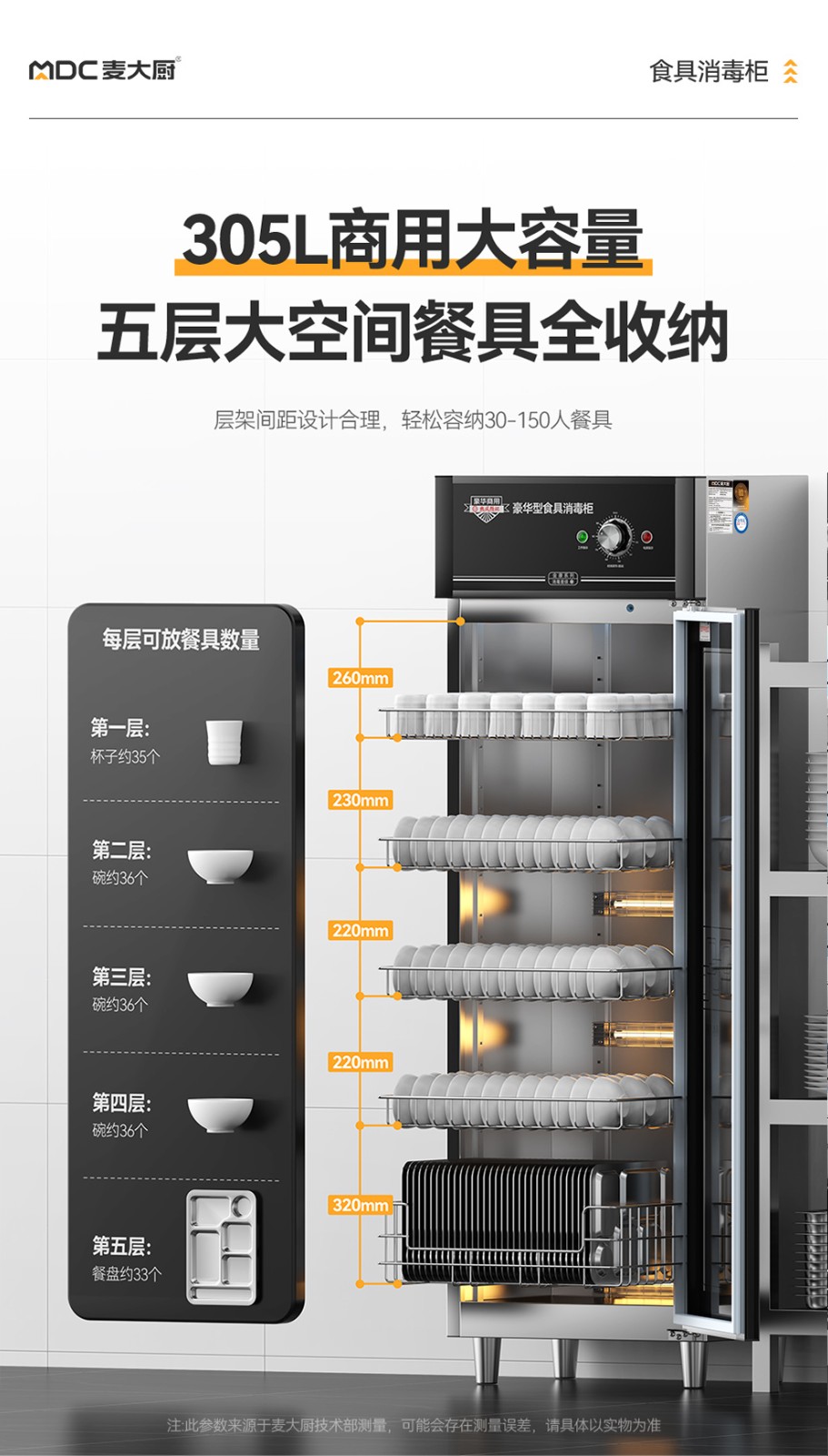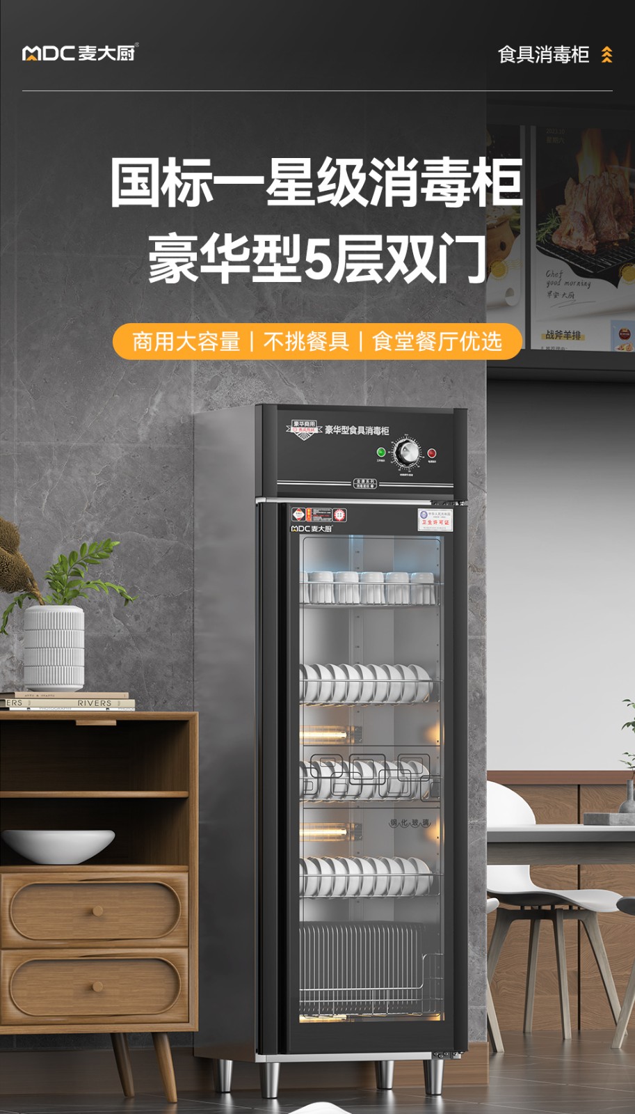 麦大厨豪华旋钮型5层单门中温食具消毒柜(臭氧+紫外线+热风循环)950W