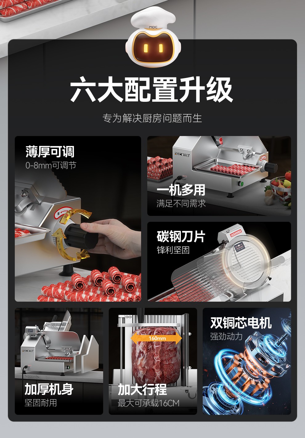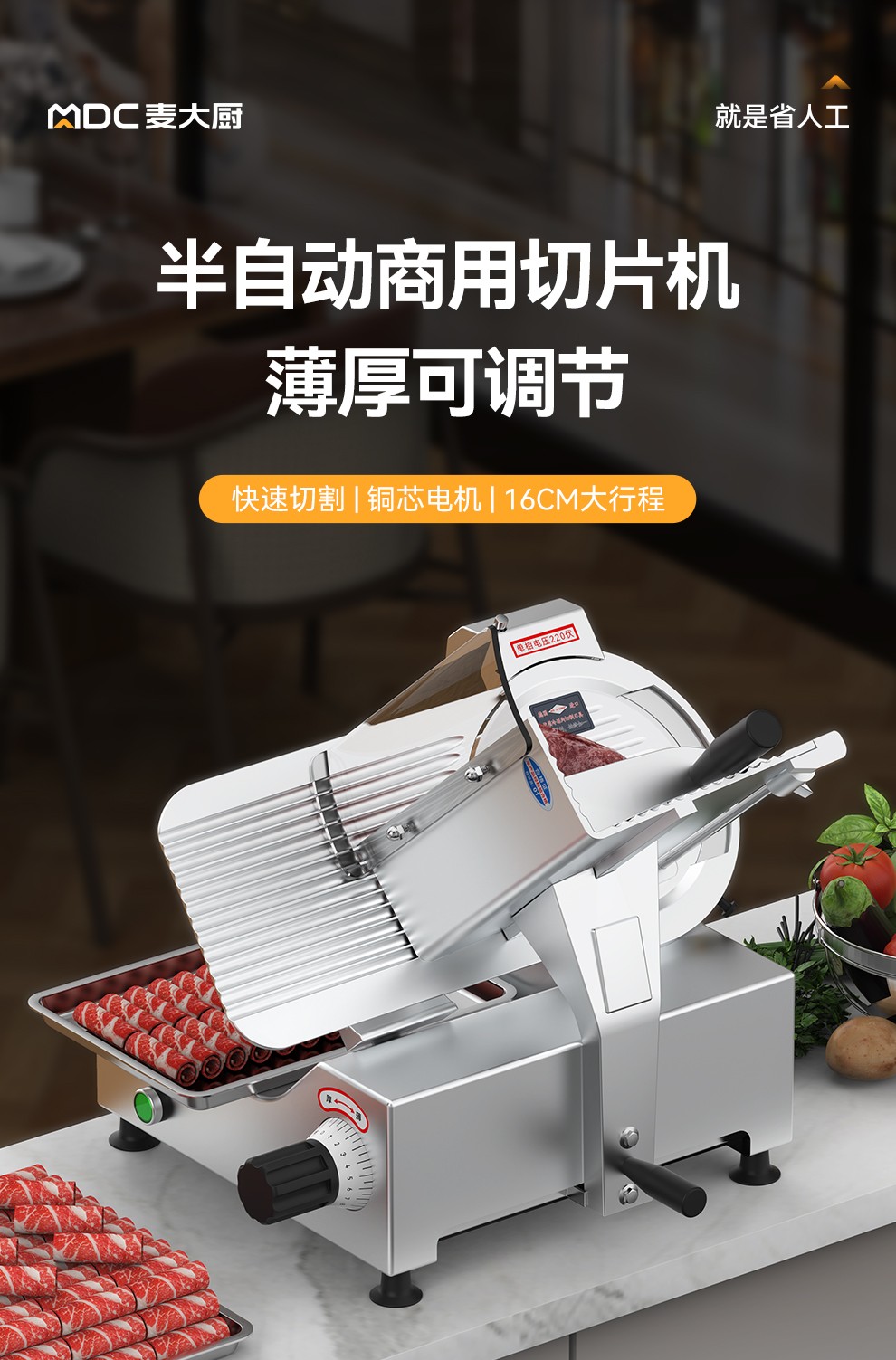 麦大厨商用10寸台式半自动切片机切牛肉羊肉片专用