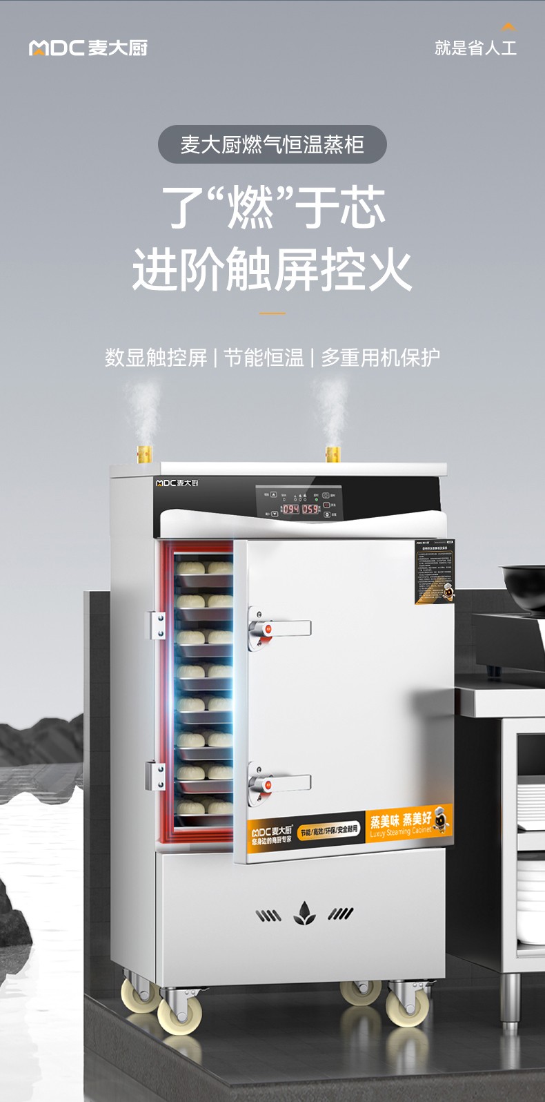麦大厨商用单门8盘智能恒温燃气蒸饭柜大型食堂蒸饭箱
