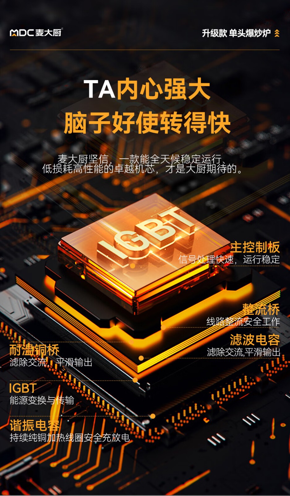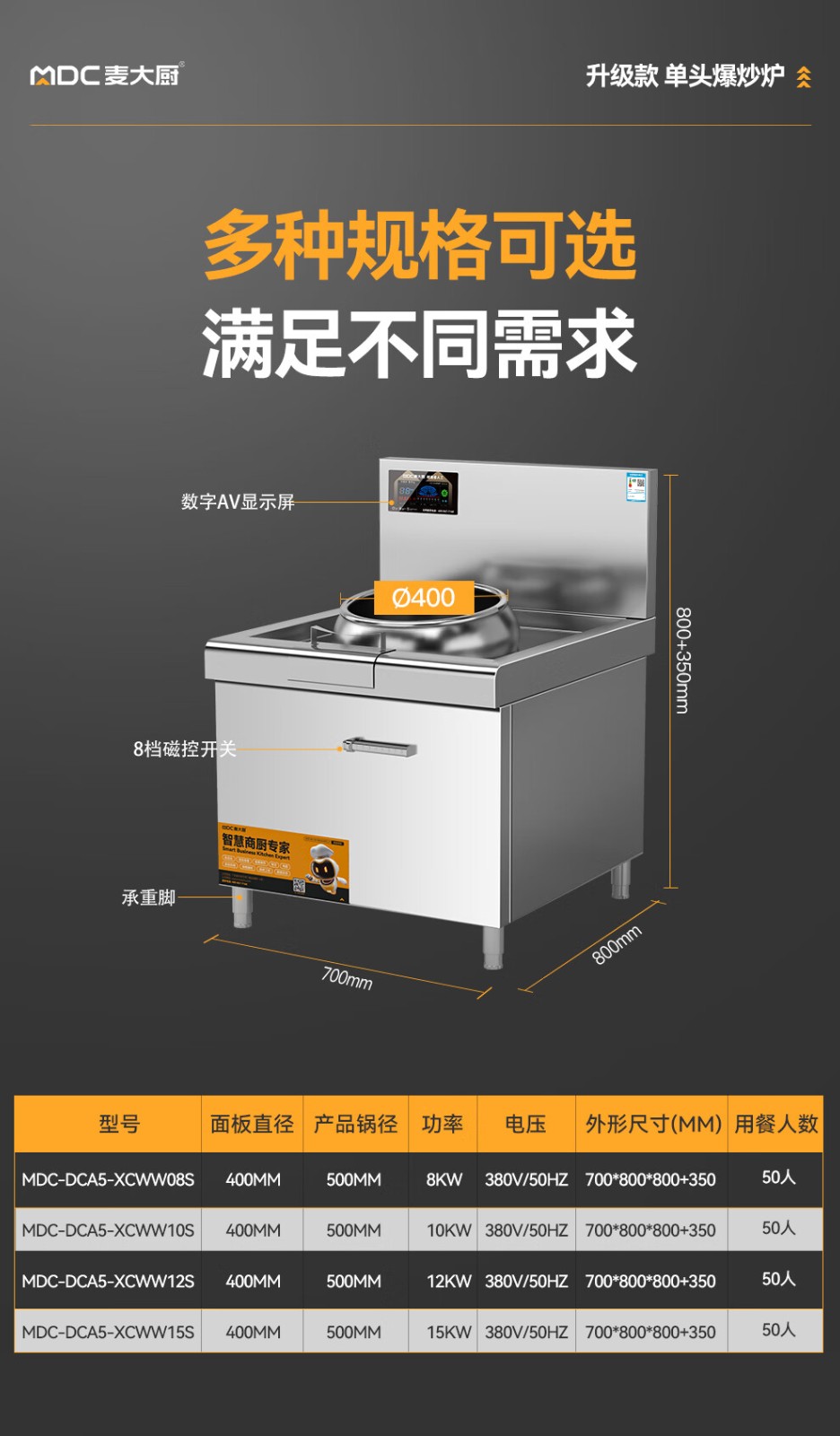 麦大厨食堂大火力电磁灶升级款单头无尾小炒炉商用12kw