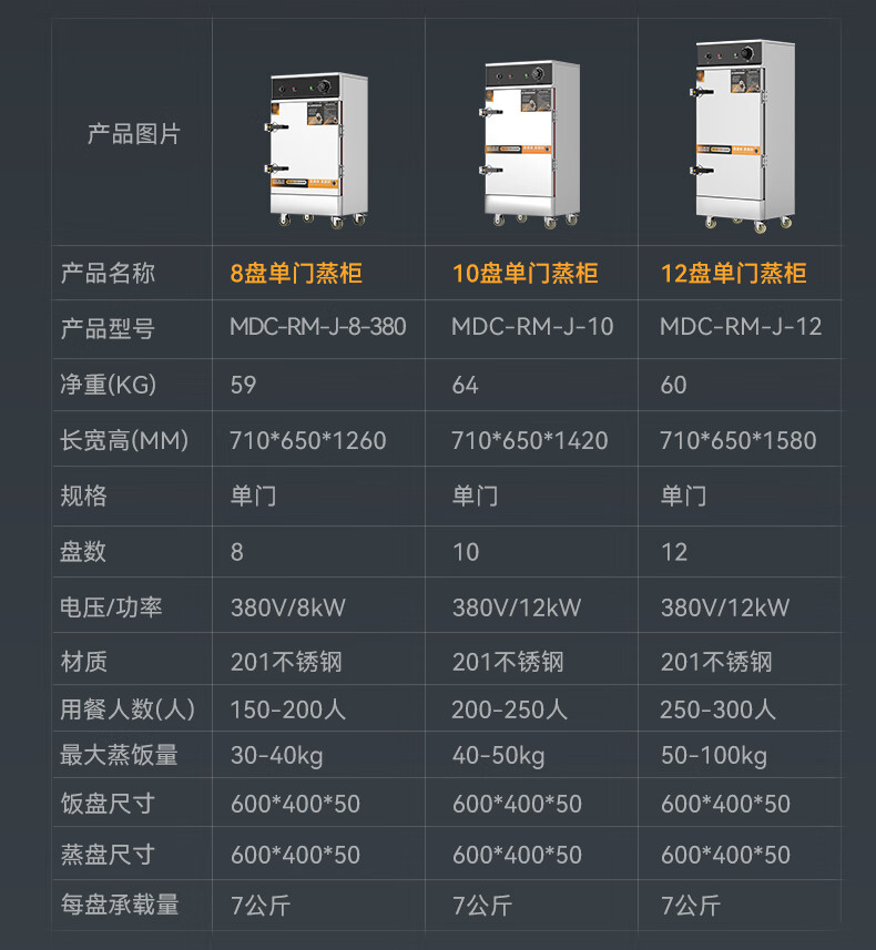 - 更多MDC商用蒸饭柜规格咨询在线客服