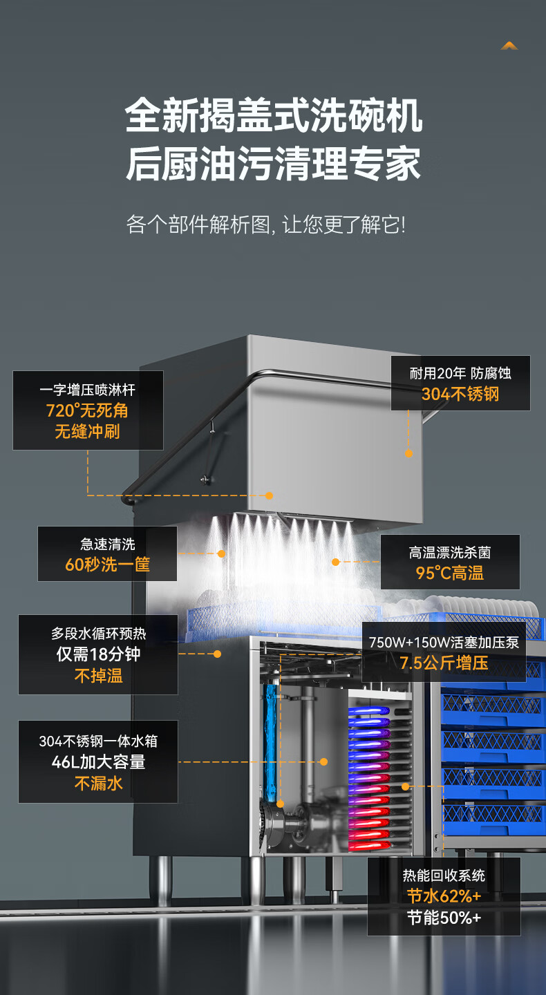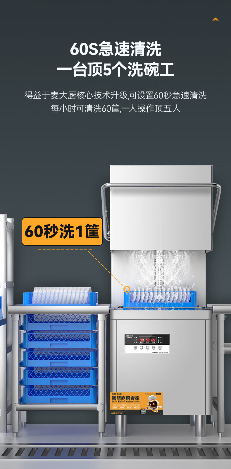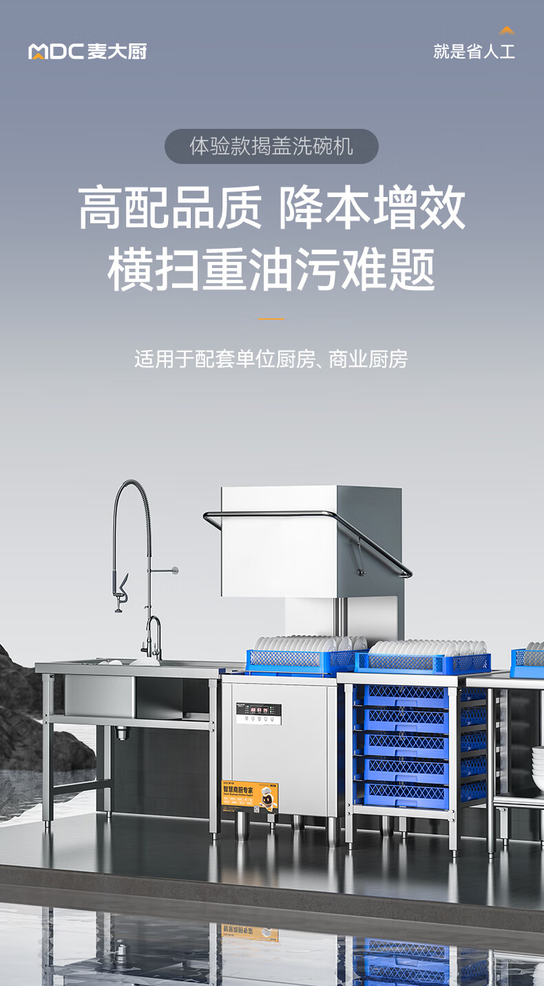 麦大厨2.0S体验双泵款无窗揭盖式洗碗机商用7kw