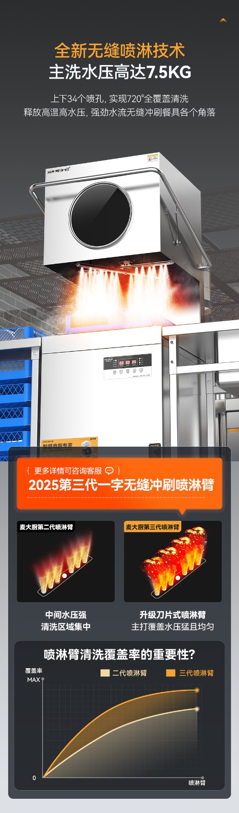 麦大厨3.0连锁热销款双泵透窗揭盖式洗碗机商用12kw