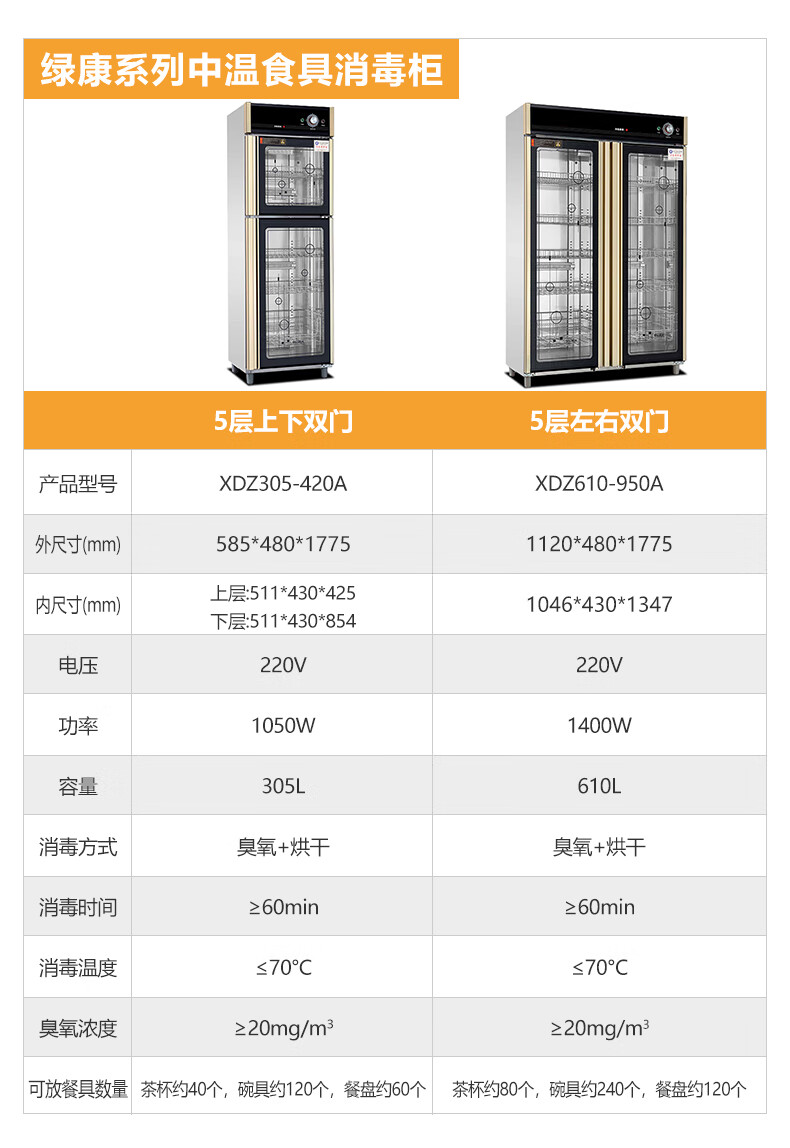 - 消毒方式:紫外线+臭氧+热风循环