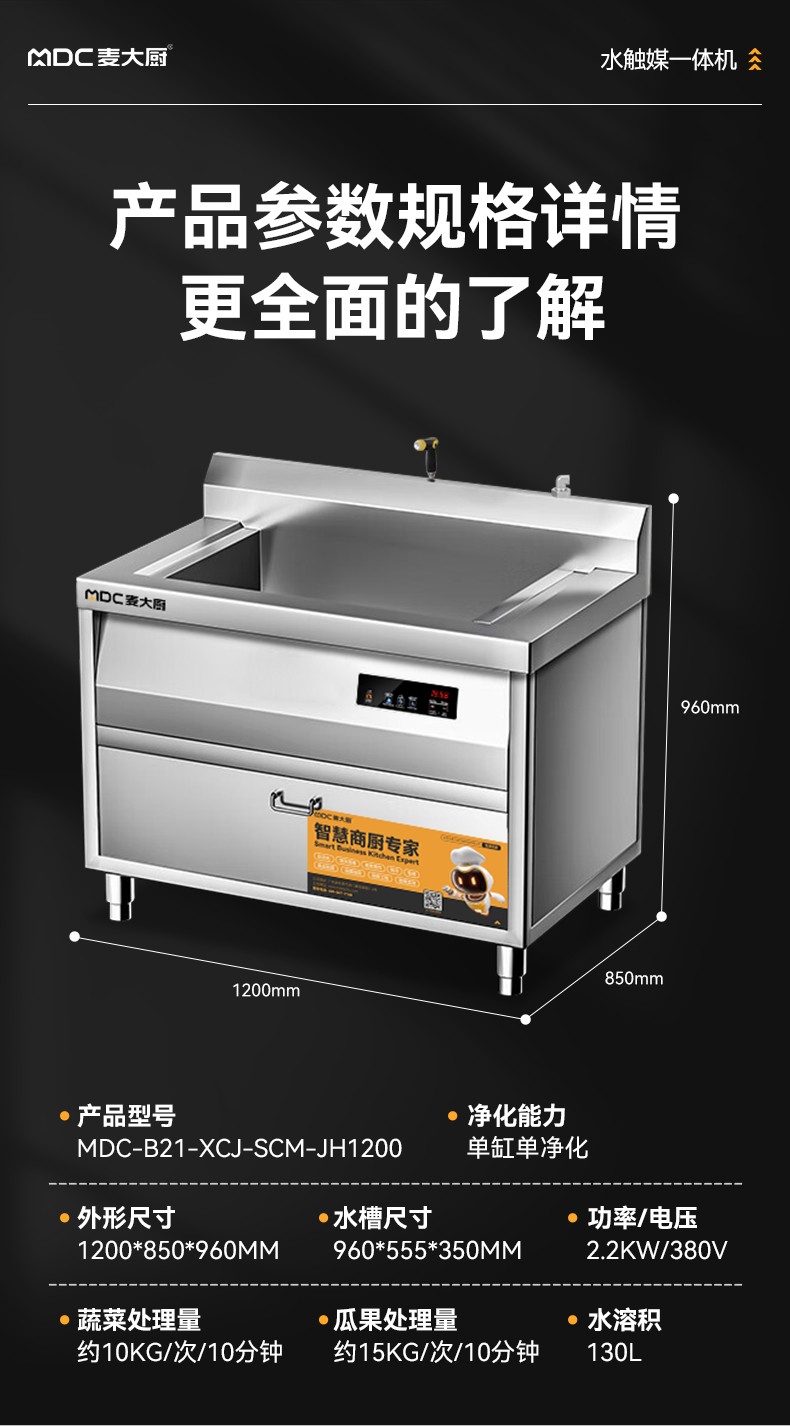 麦大厨1.2米自动商用洗菜机果蔬清洗机单缸水触媒净化机
