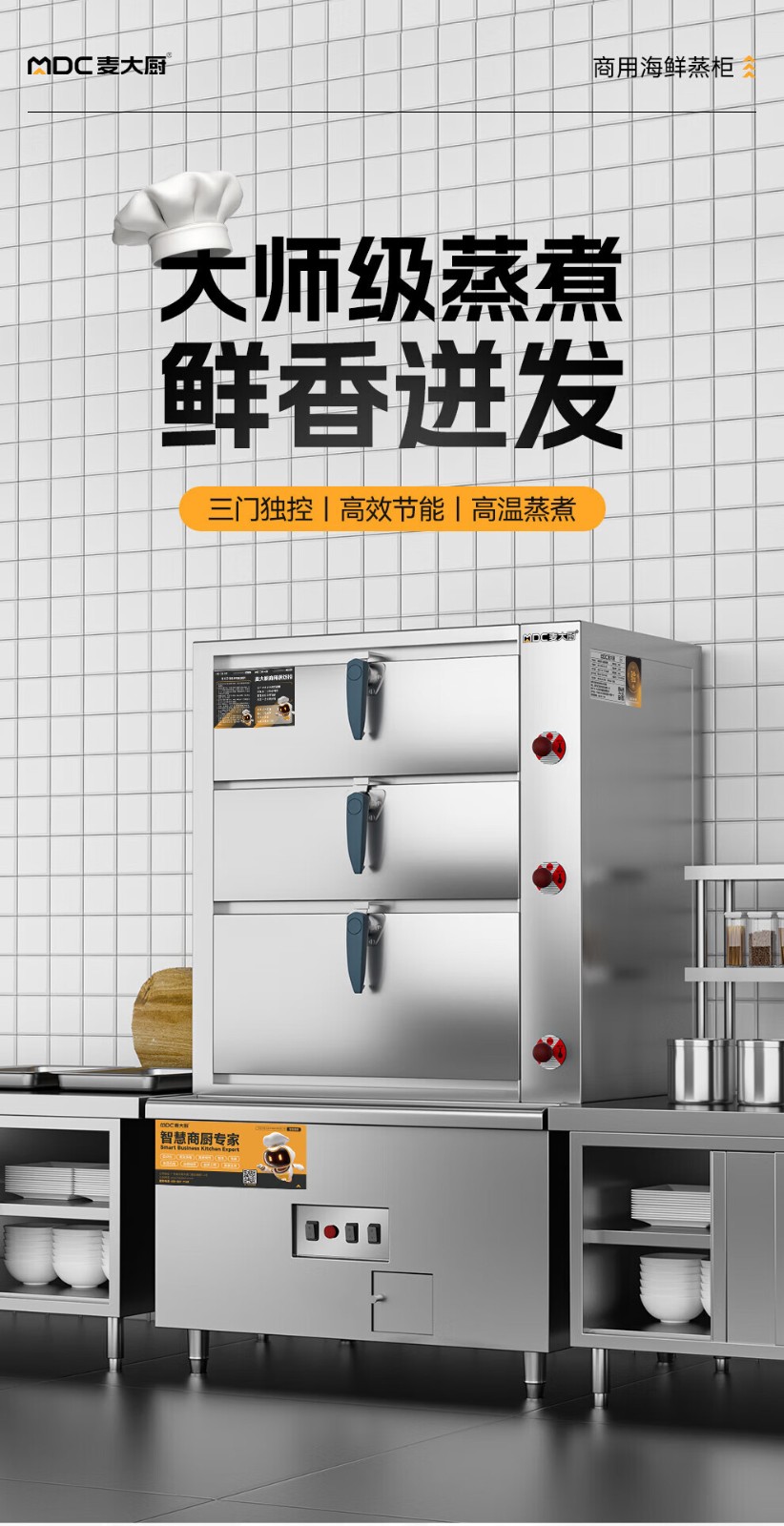 麦大厨商用蒸柜1000mm电热款三门海鲜蒸柜