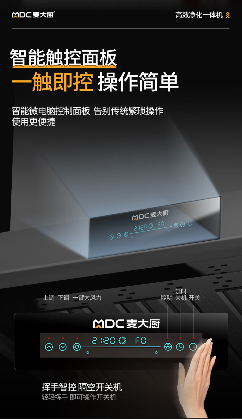 麦大厨1.6米轻油烟内循环净化一体机(无电场)