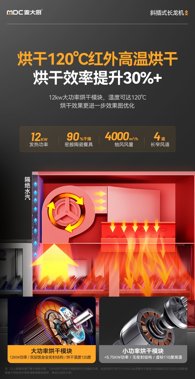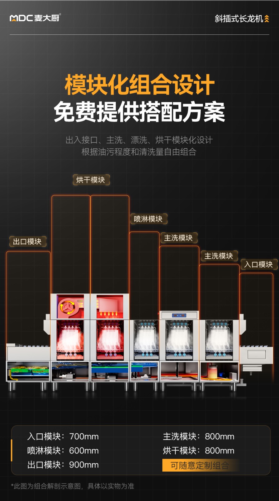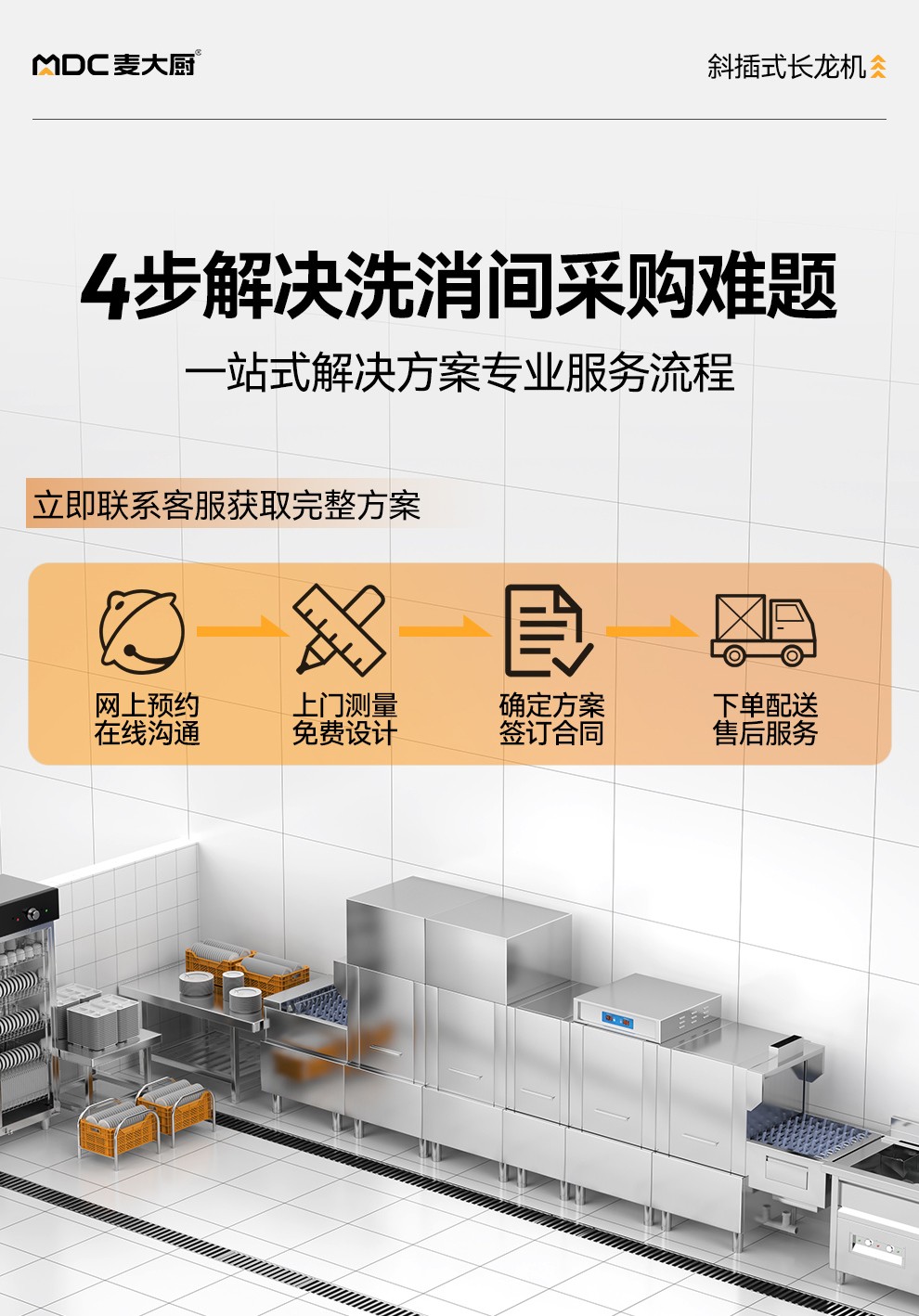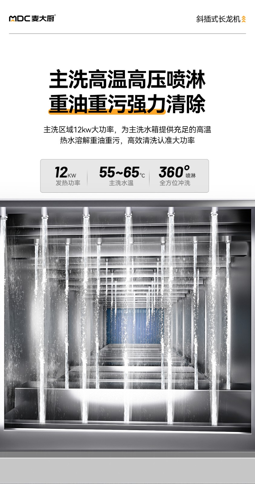 麦大厨豪华款3.8m斜插式单缸双喷淋单烘洗碗机商用