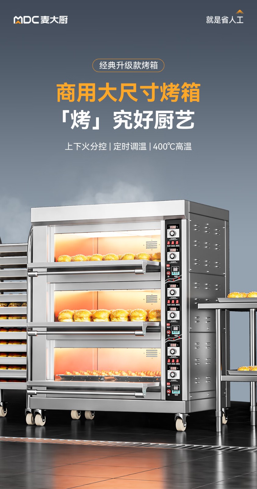 麦大厨标准款三层六盘旋钮控温定时烤箱19.8KW
