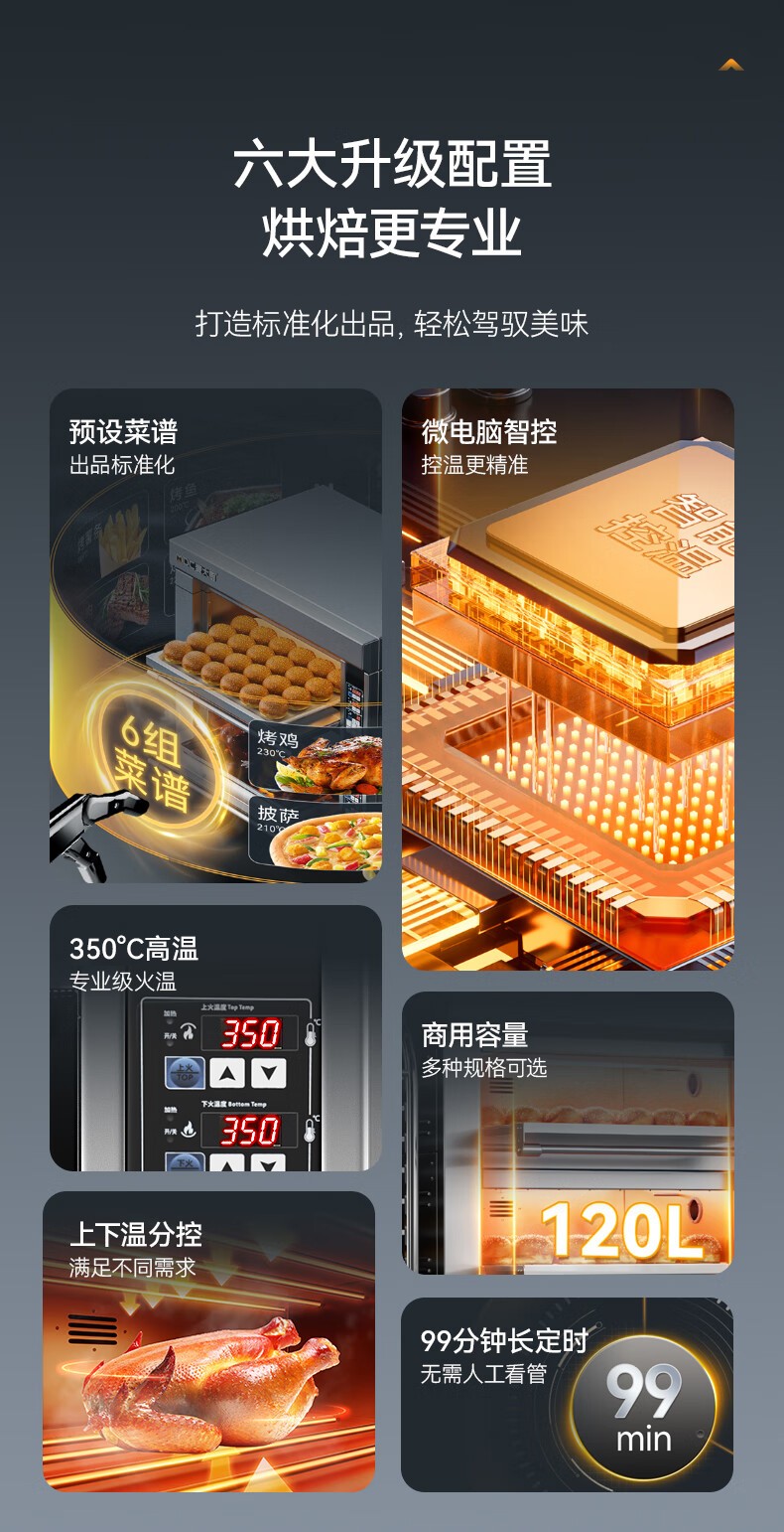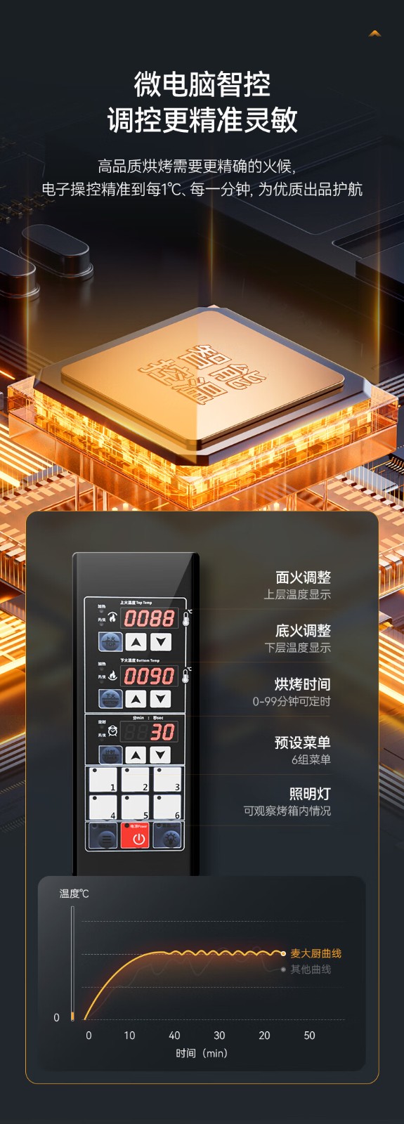 麦大厨豪华款两层两盘智能控温上下独立烤箱6.4KW