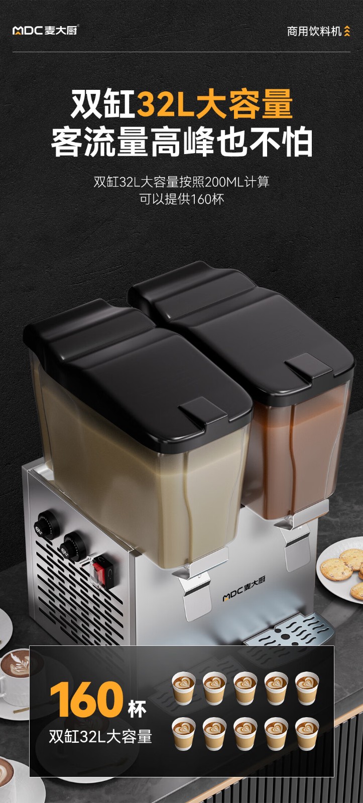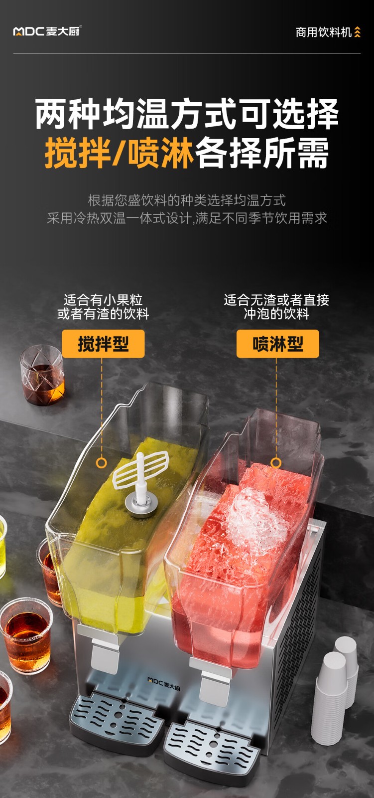 麦大厨220V标准款双缸冷热喷淋式饮料机商用235W