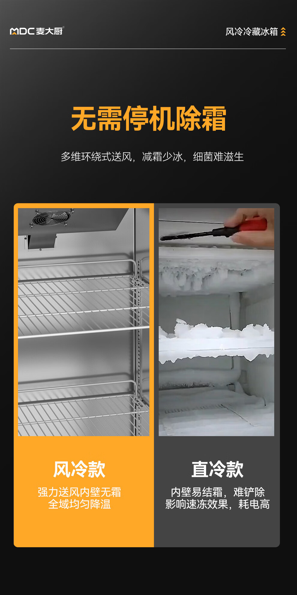 麦大厨经济款两门风冷立式冷藏柜384W