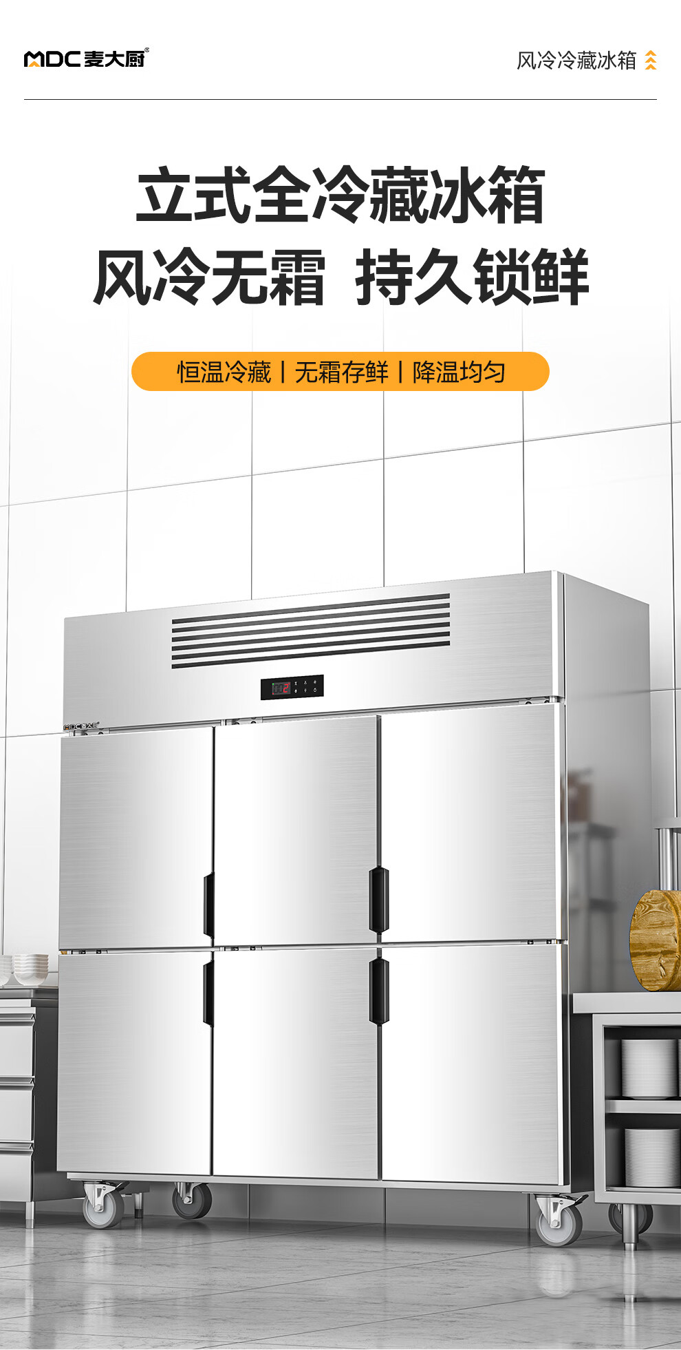 麦大厨经济款六门风冷立式冷藏柜997W