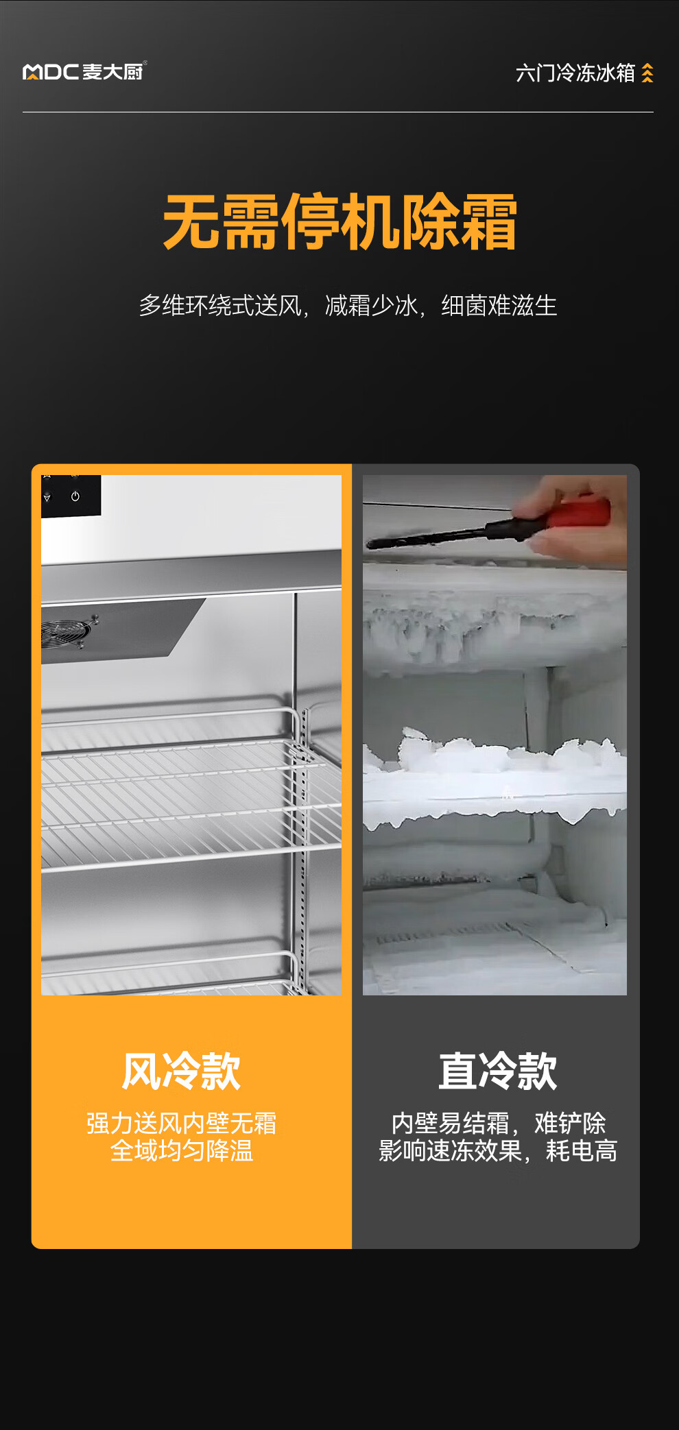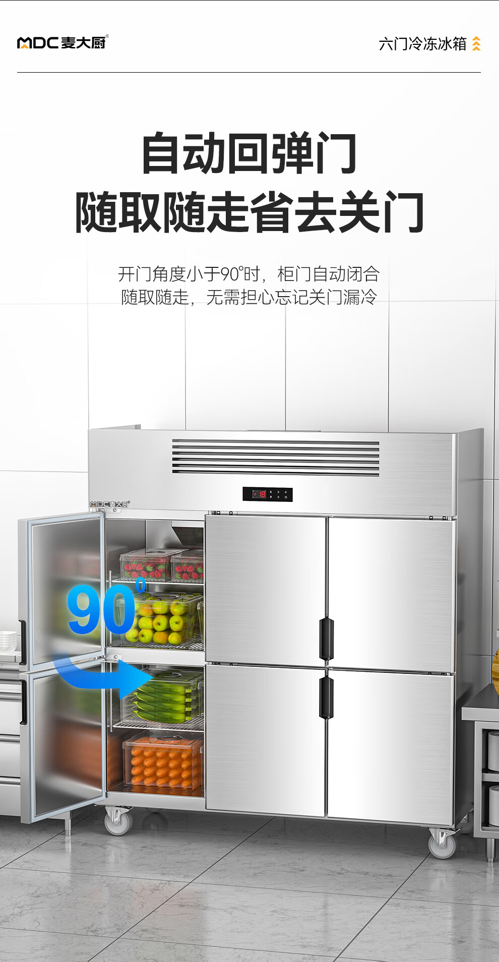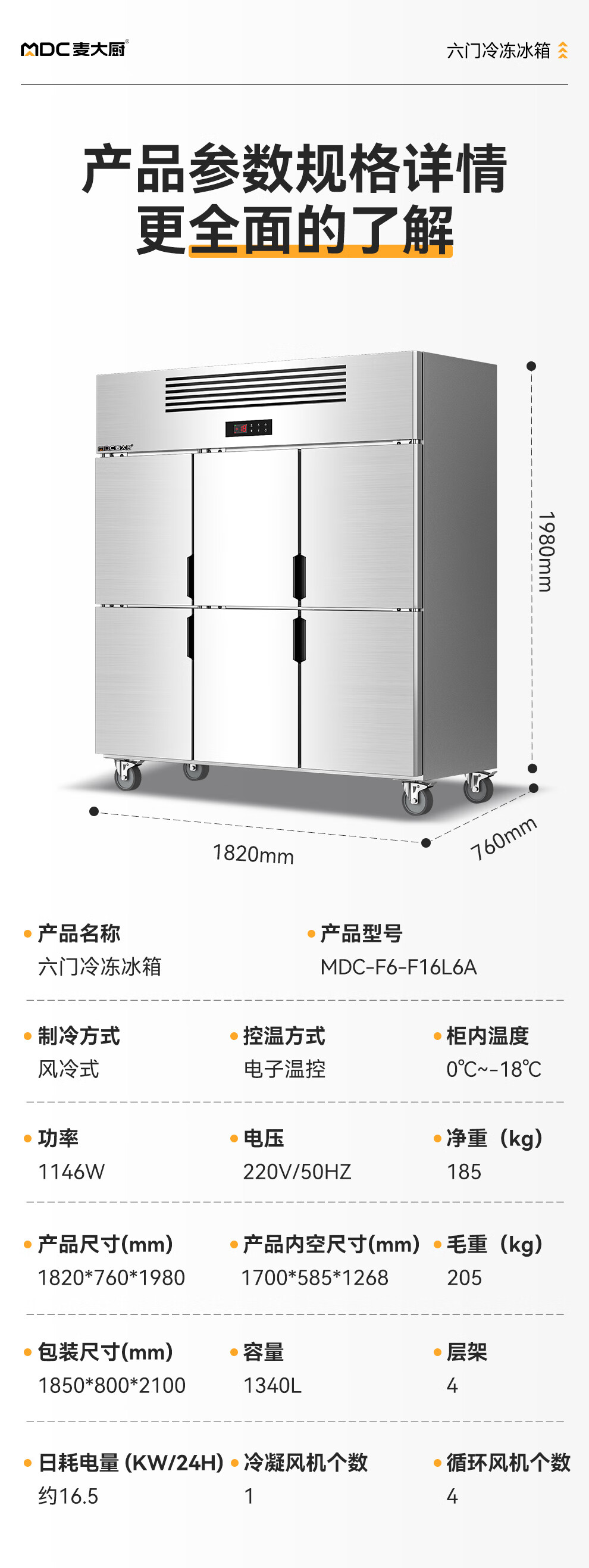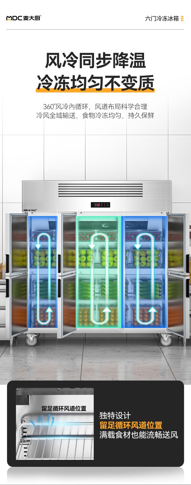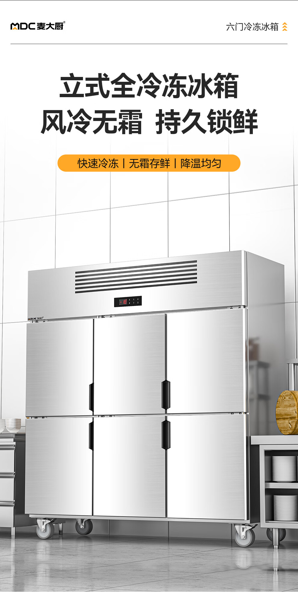 麦大厨经济款六门风冷立式冷冻柜1146W