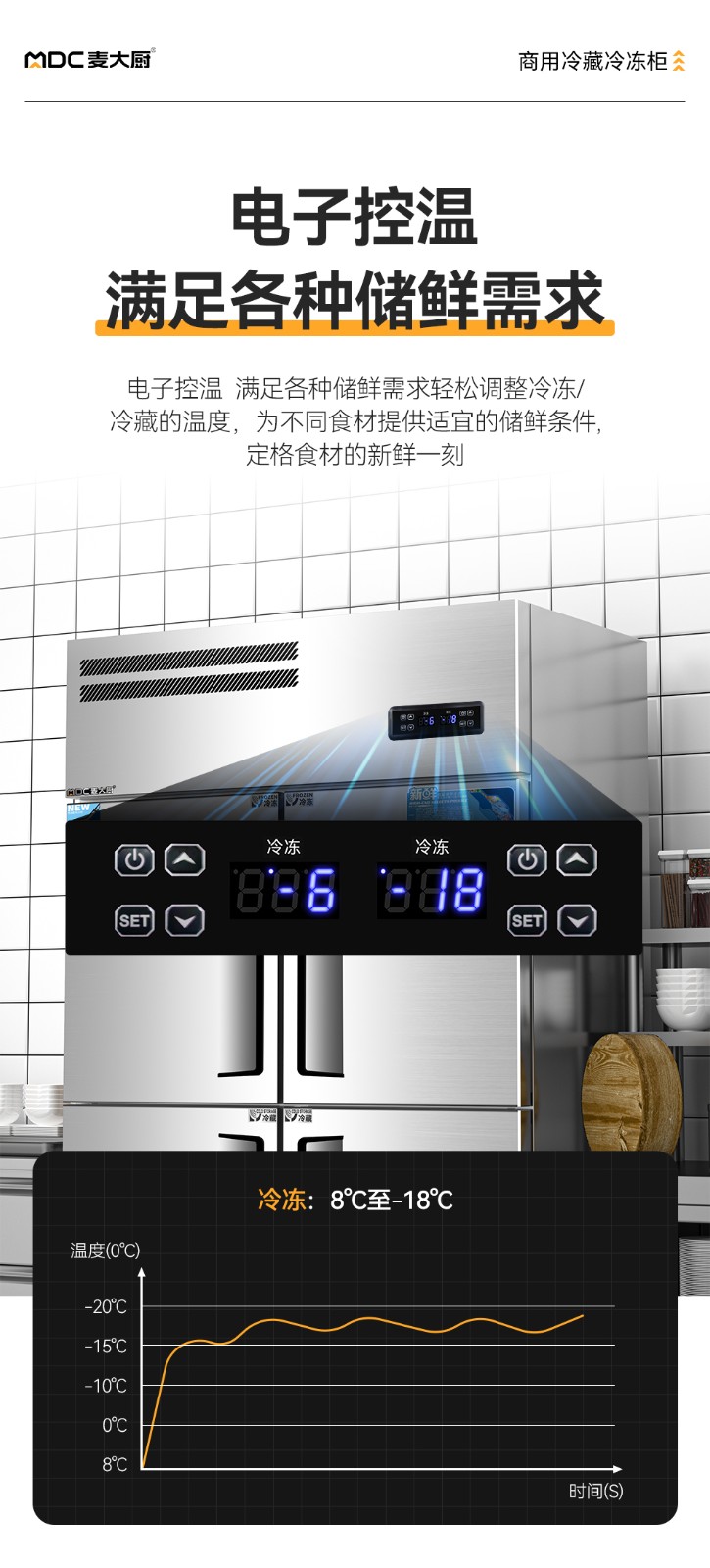 冷冻温度范围:8℃~-18℃