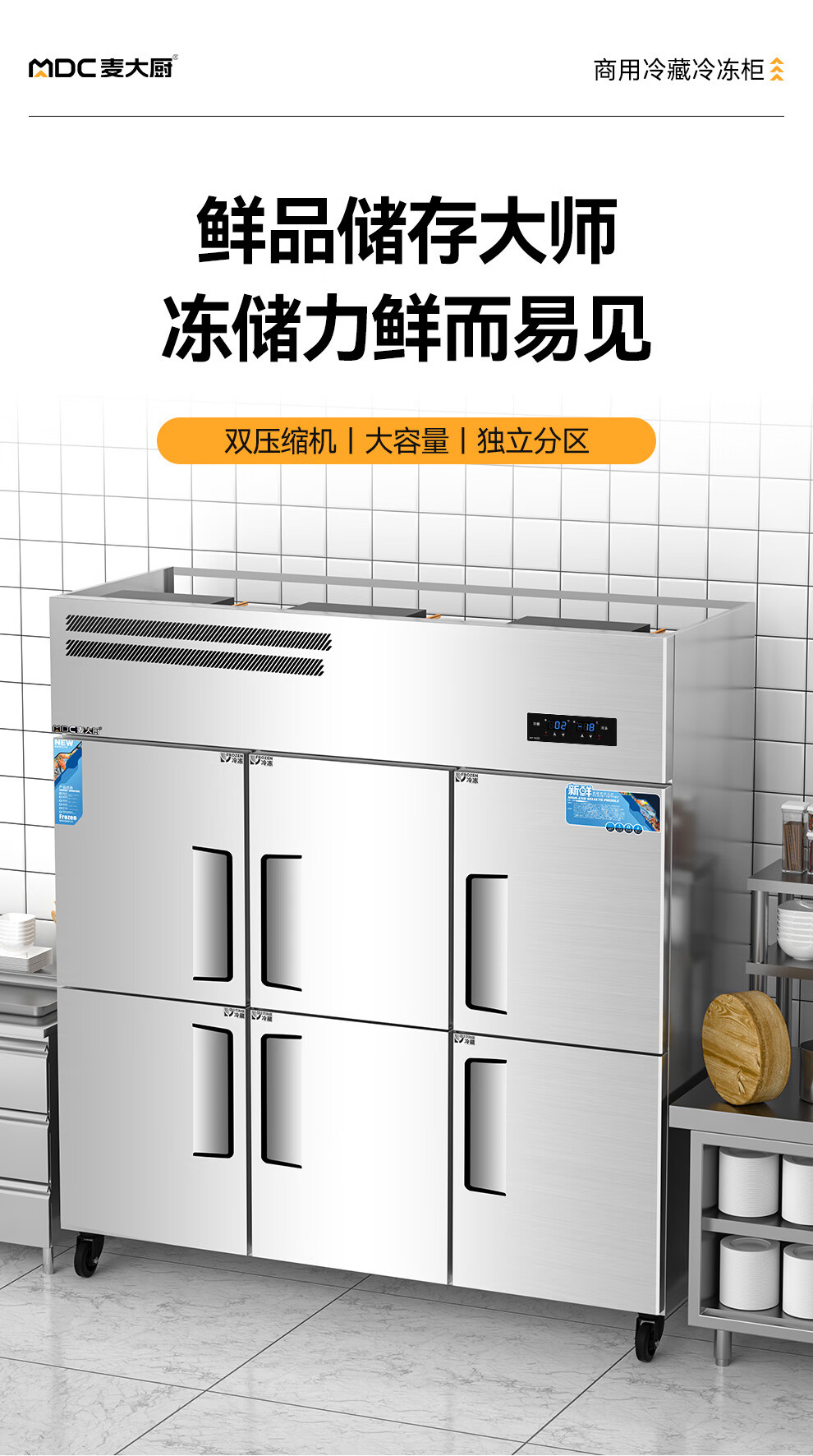 麦大厨标准款六门直冷立式双温冰柜