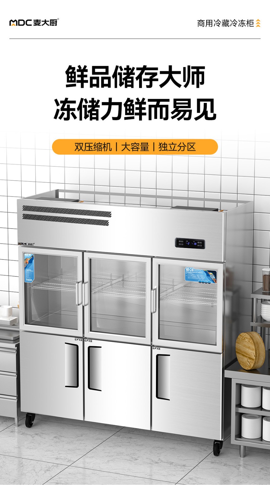 麦大厨标准款六门直冷上玻璃立式双温冰柜